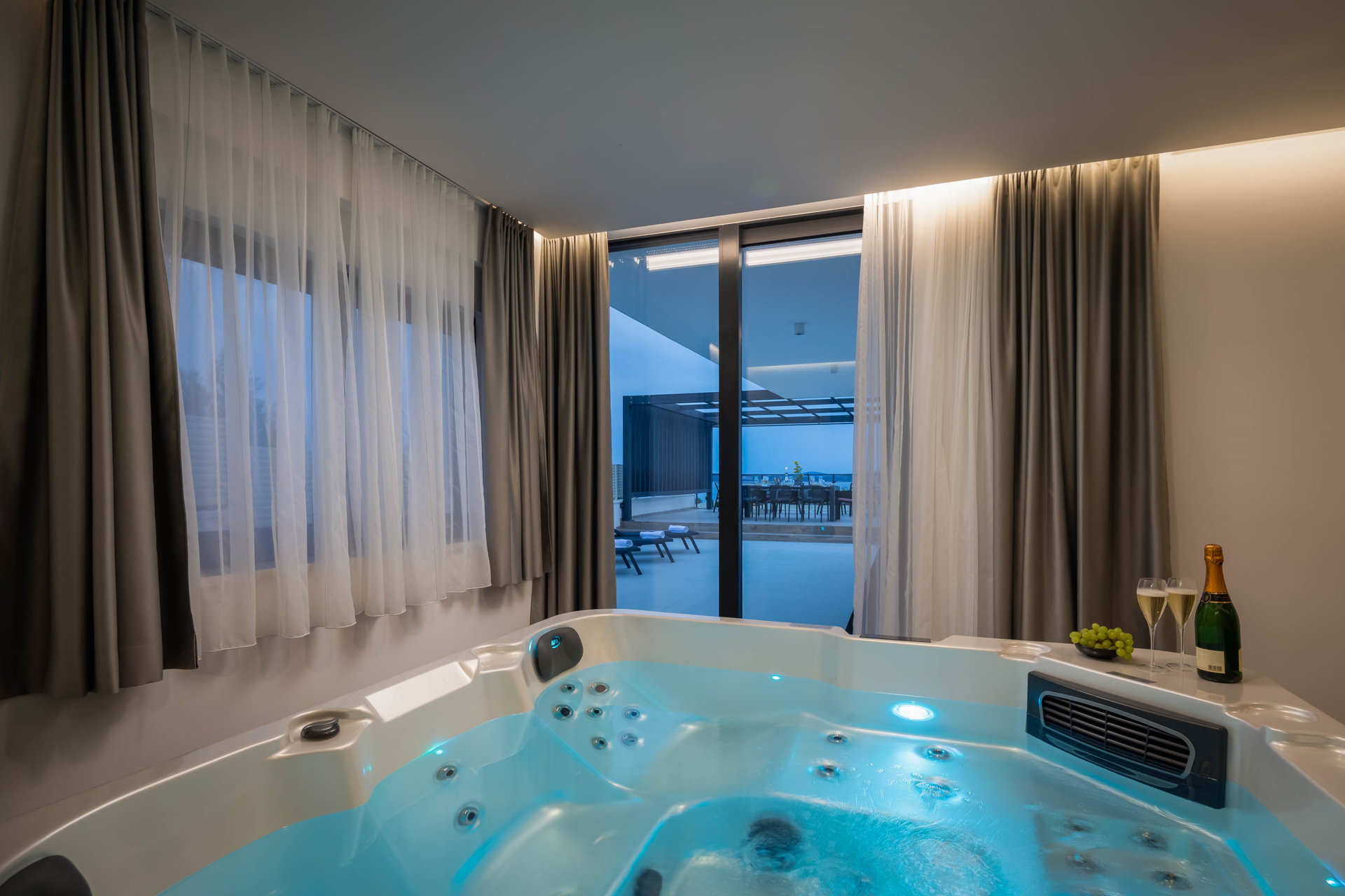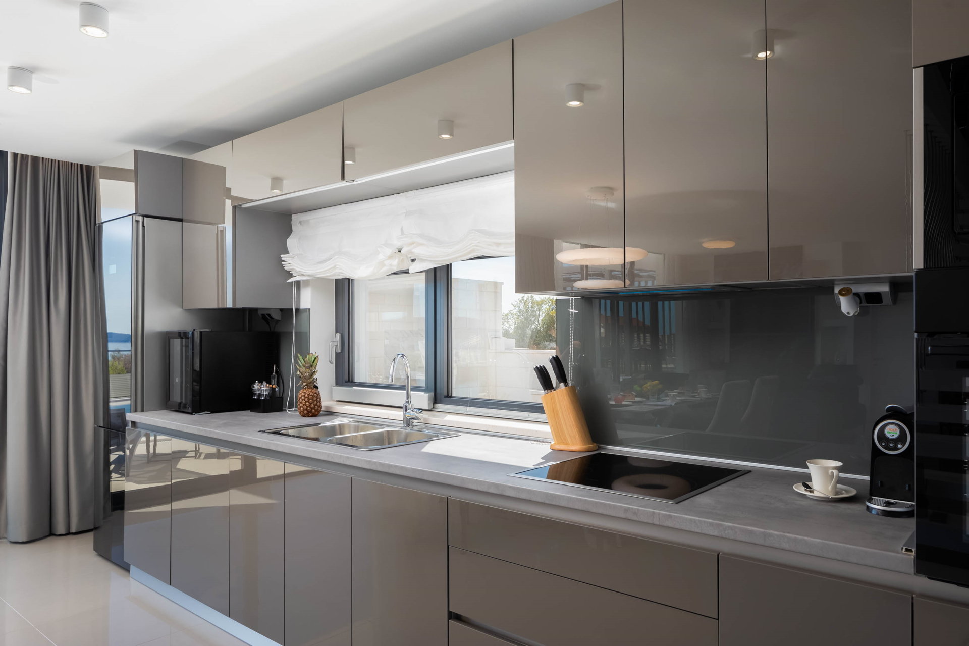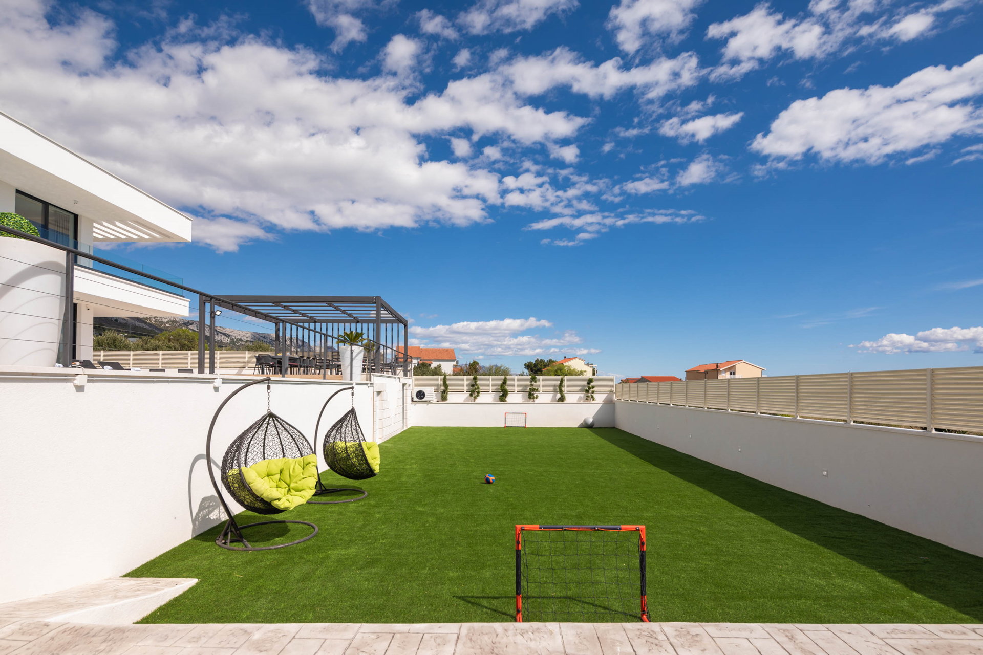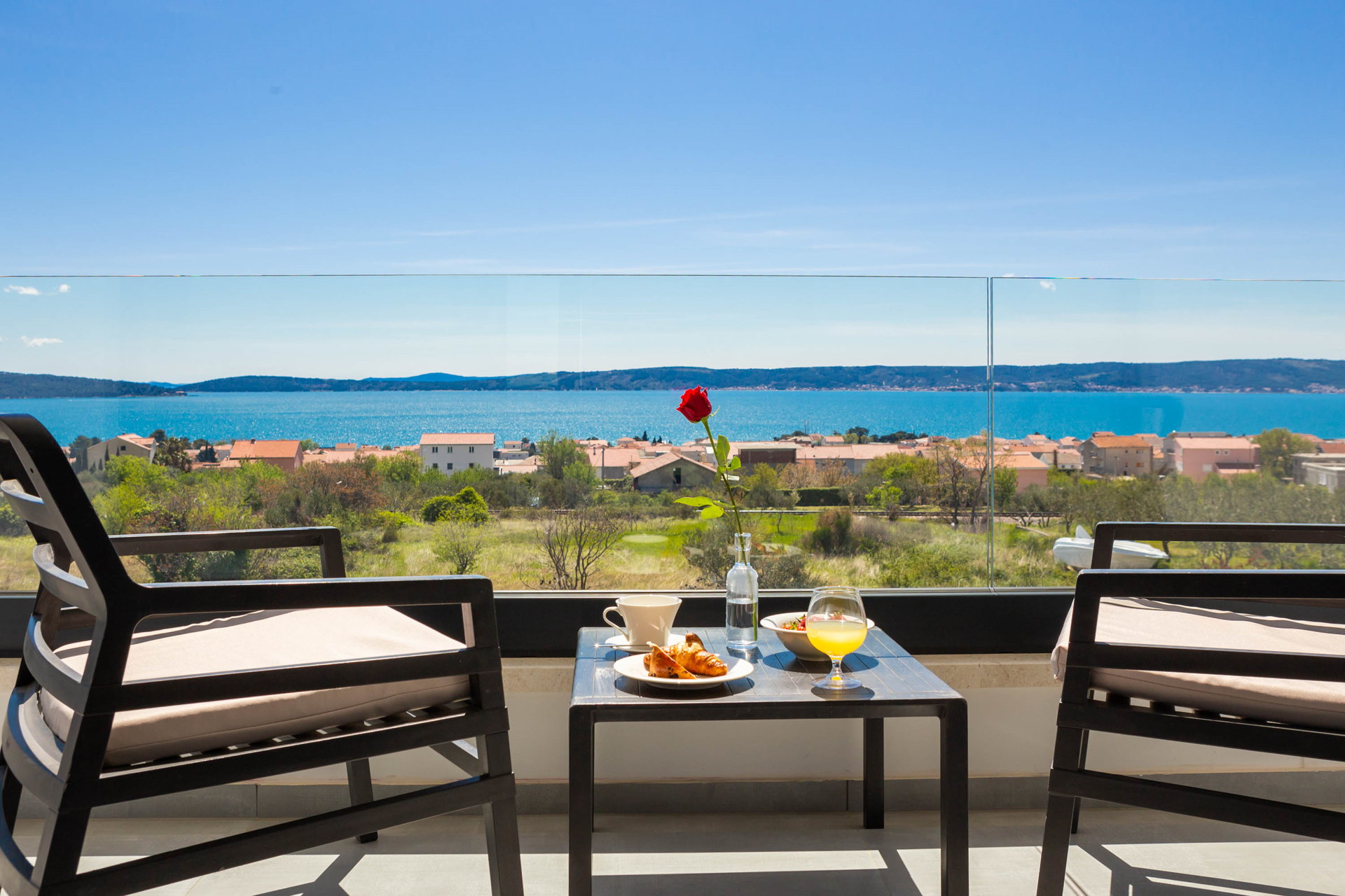 This fully fenced property features a 50m2 infinity pool and twelve beach chairs. Here you can lie down and enjoy the sun in privacy. Just imagine sipping your favorite cocktail while enjoying the views of the blue Adriatic Sea and the Ciovo peninsula.