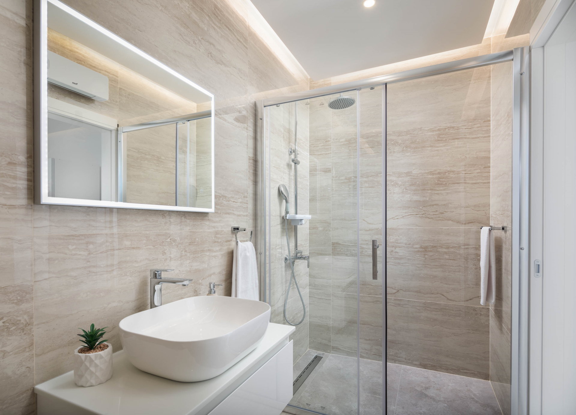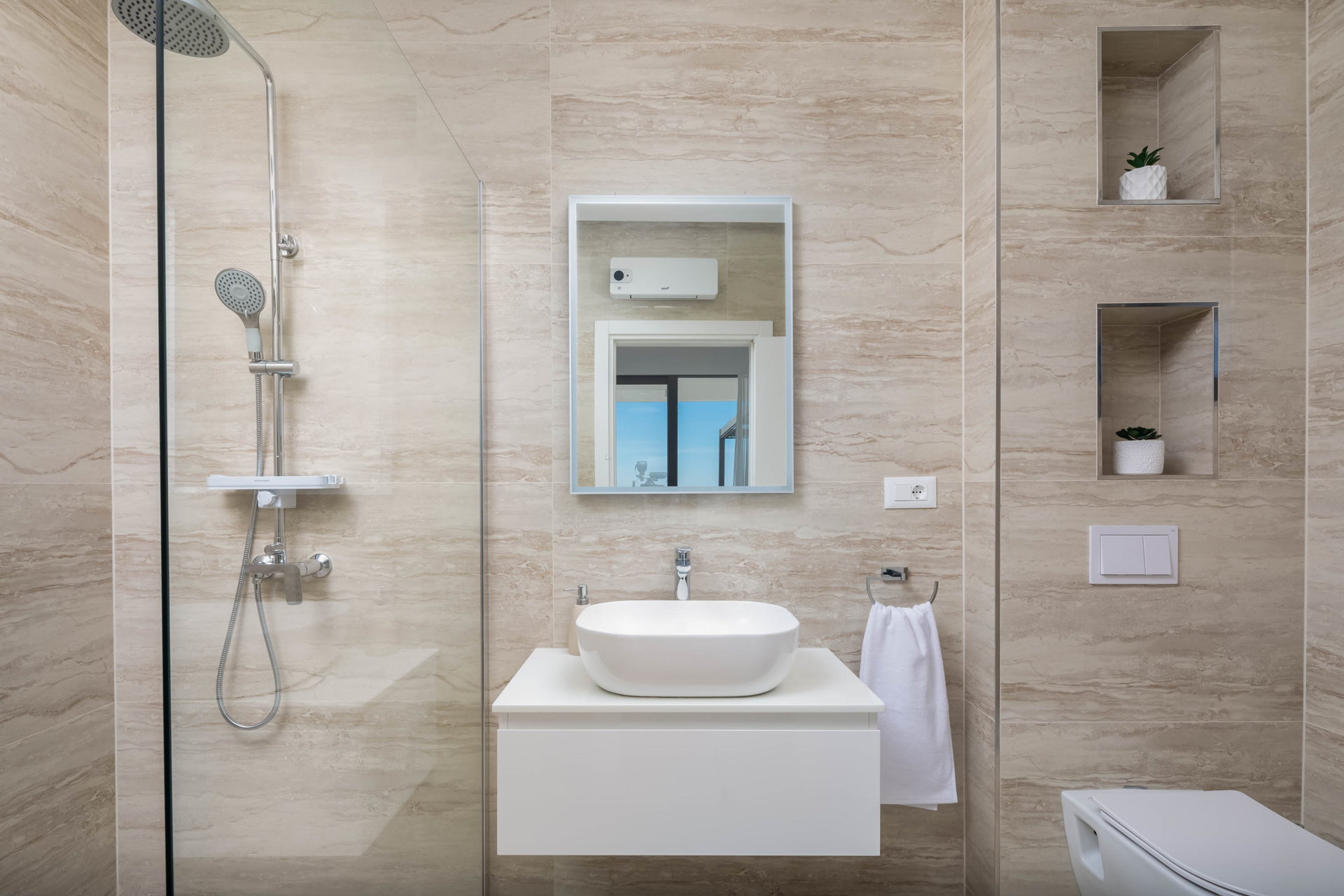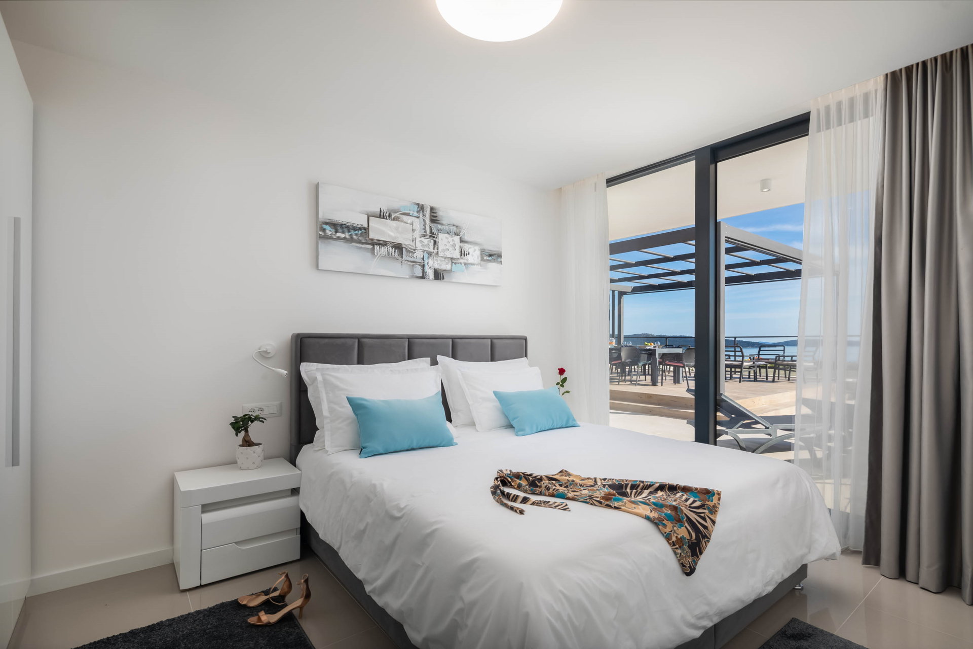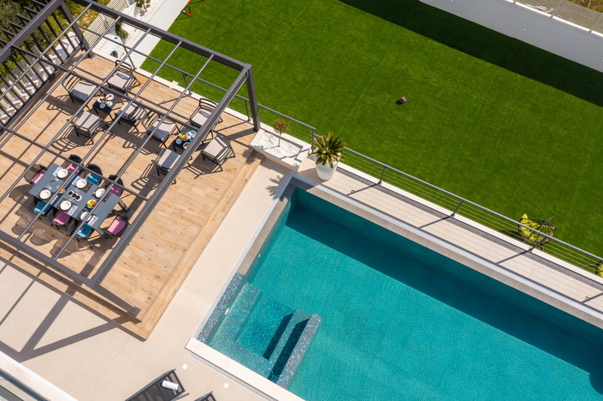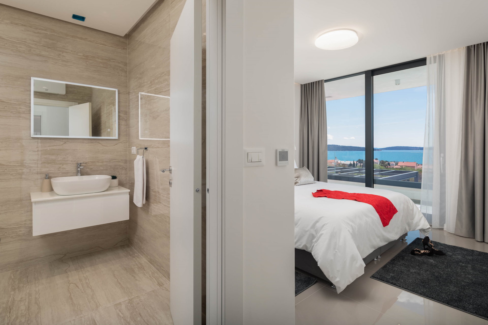This fully fenced property features a 50m2 infinity pool and twelve beach chairs. Here you can lie down and enjoy the sun in privacy. Just imagine sipping your favorite cocktail while enjoying the views of the blue Adriatic Sea and the Ciovo peninsula.