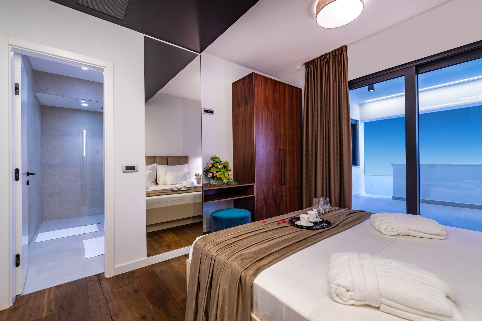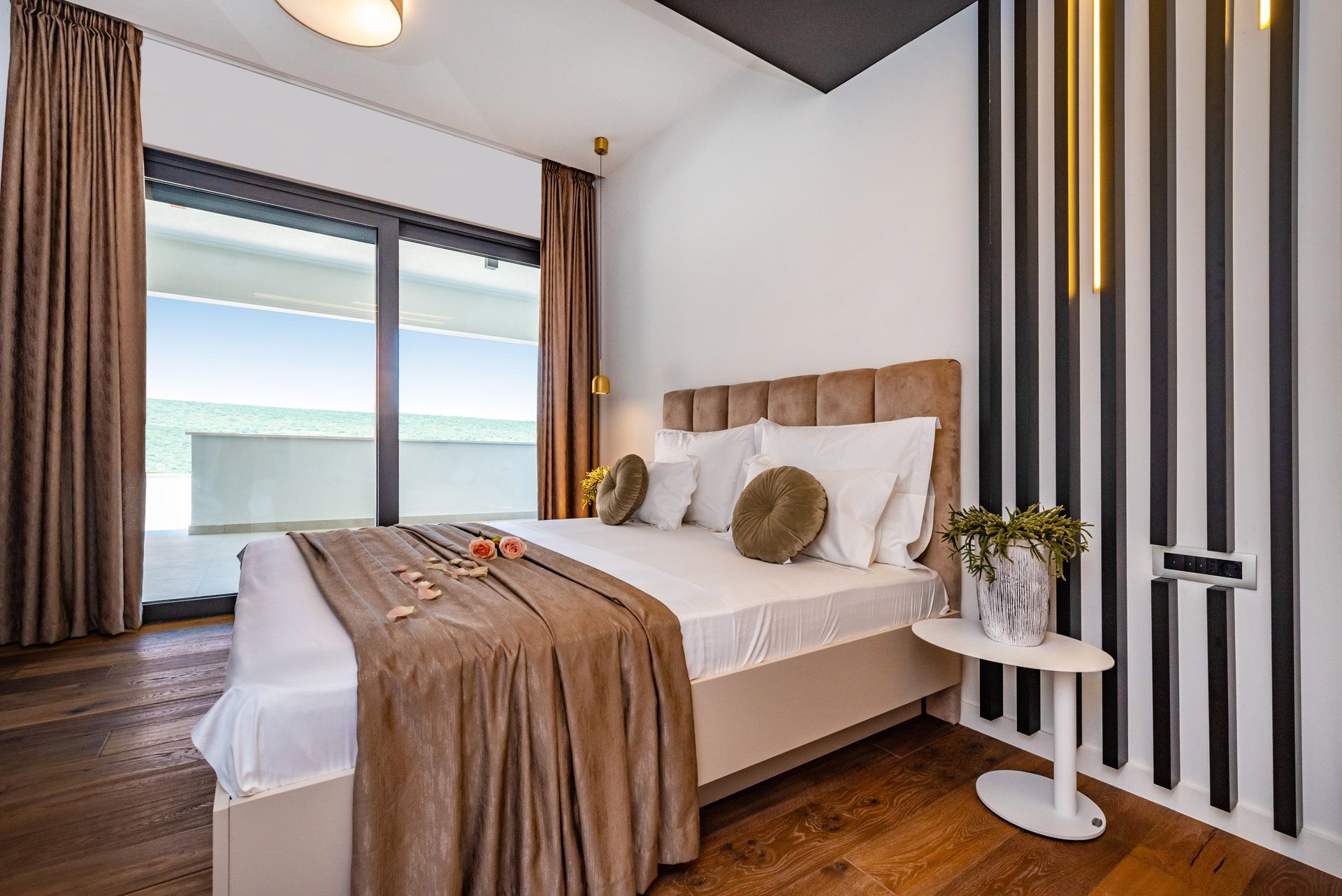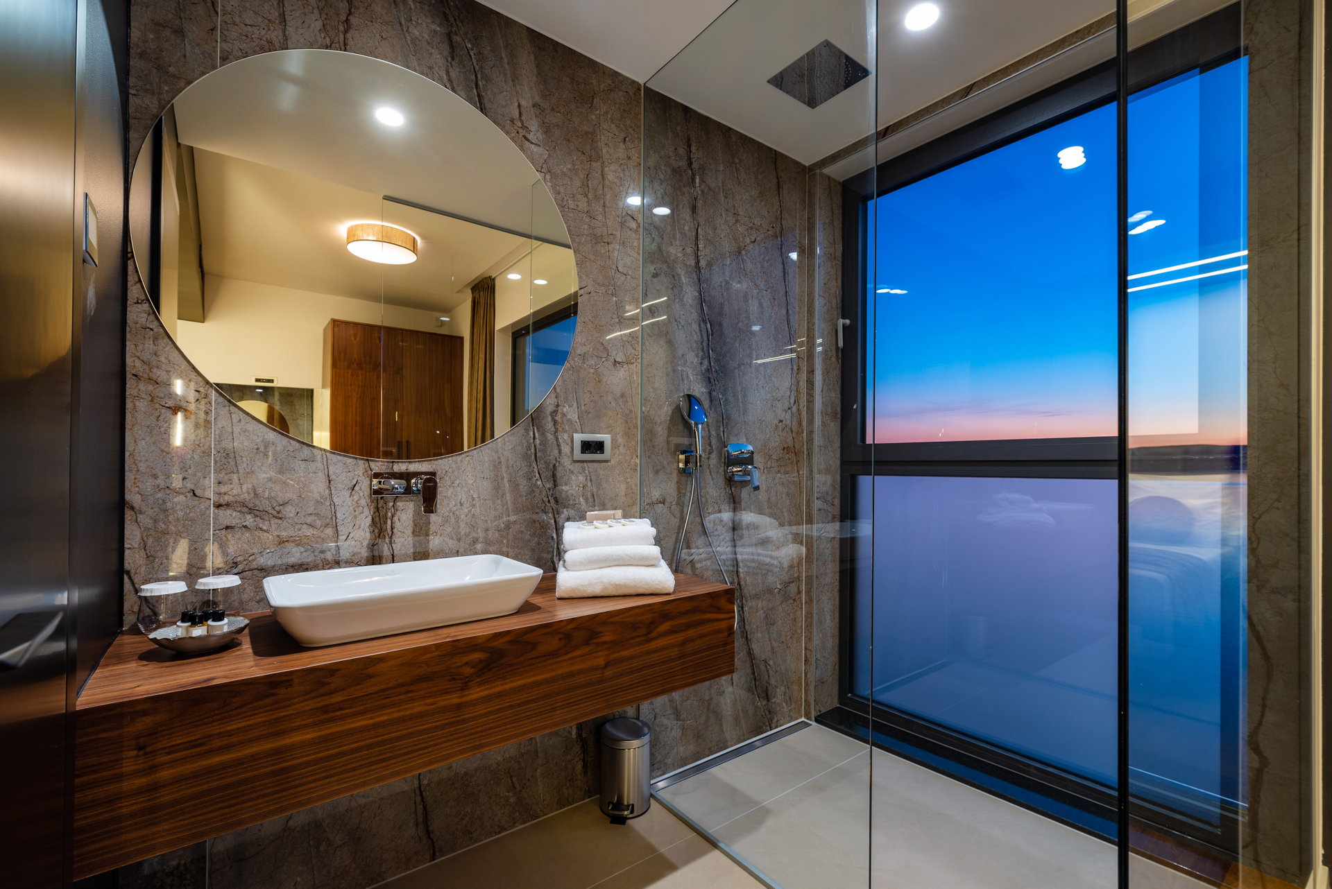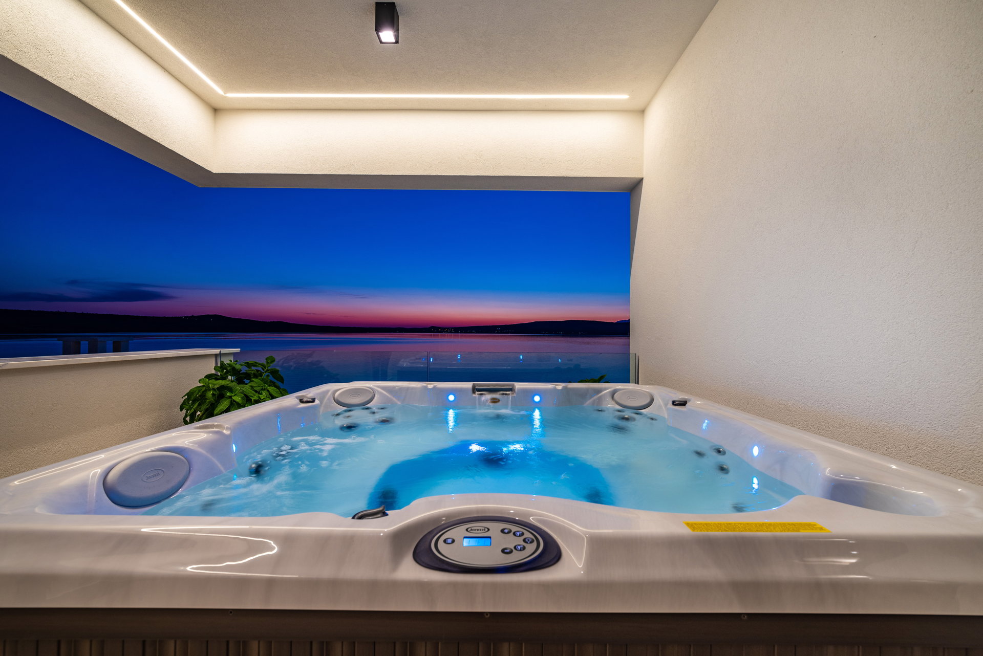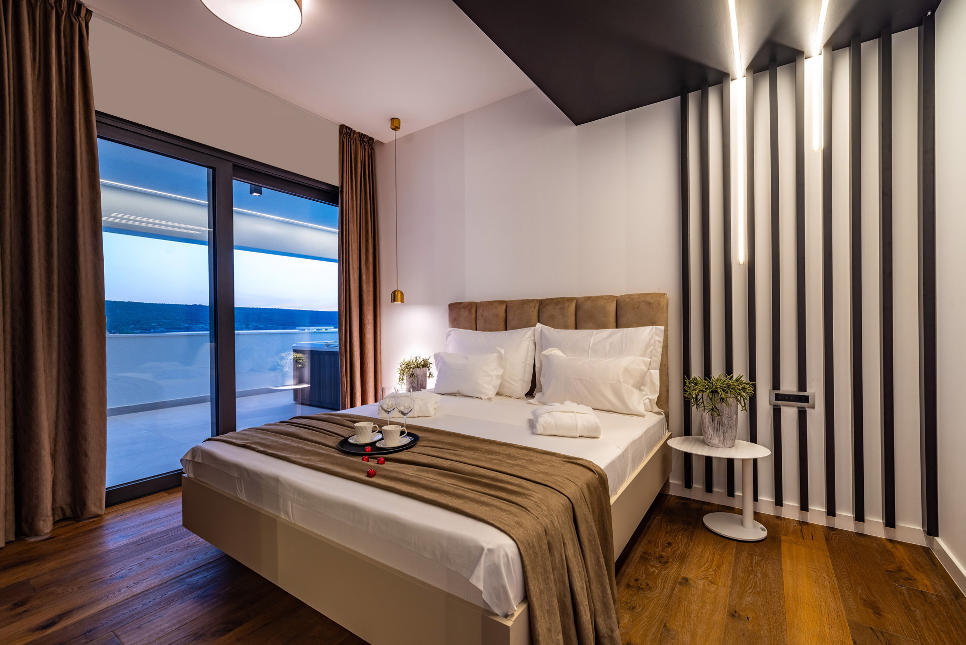 On the ground floor, you will find the modern fully equipped kitchen and spacious living room. The terrace with the heated infinity pool, jacuzzi, BBQ and dining area is a perfect place to spend your summer days and evenings, just enjoying the breathtaking sea view and basking in the sun or eating with your loved ones.