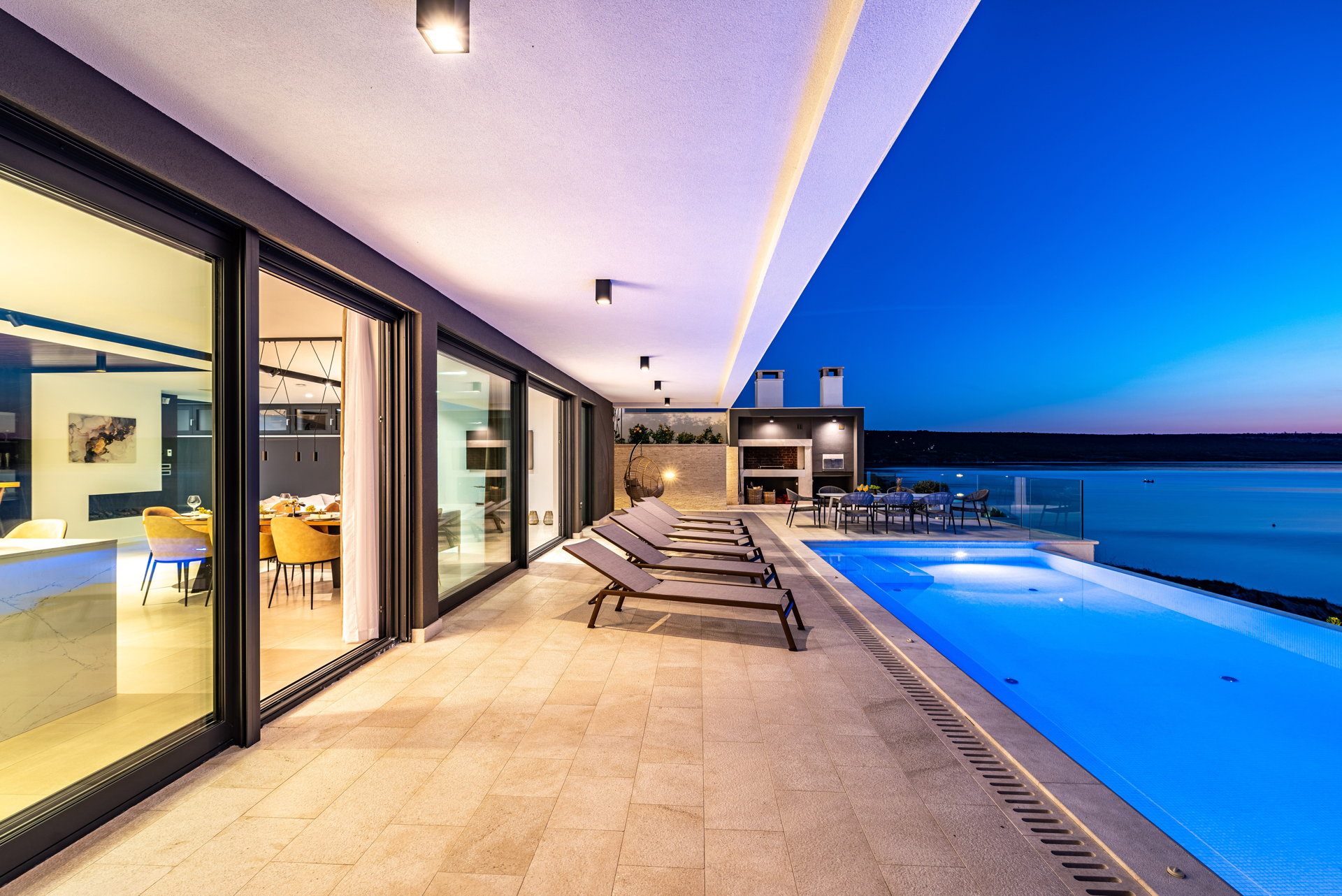 Luxury Villa Novita in the Zadar area is an amazing choice for your luxury holiday, you can visit nearby cities and everything you need like restaurants, shops and coffee bars are 1,5-2 kilometers away. The sea is only 5 meters away from the house.