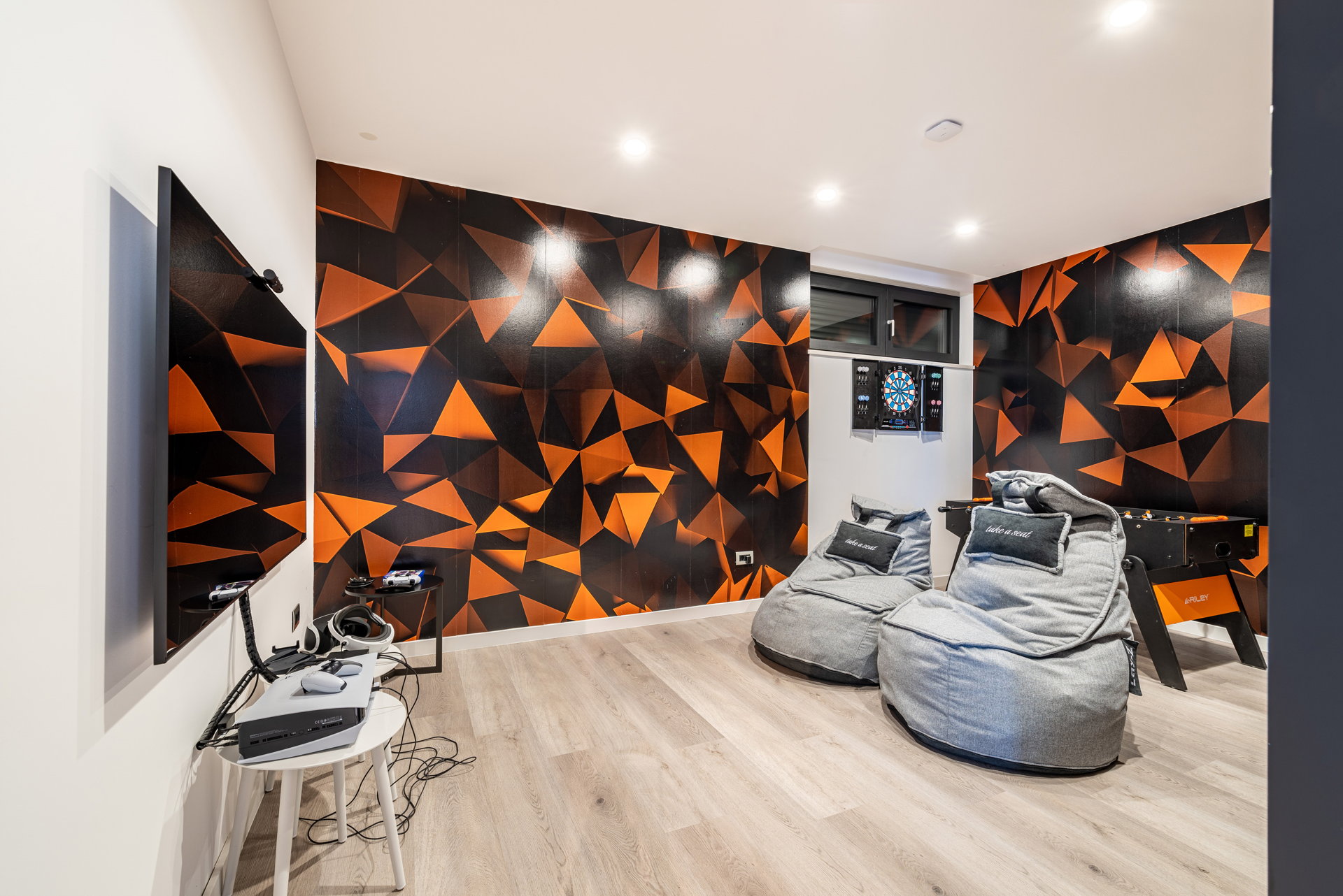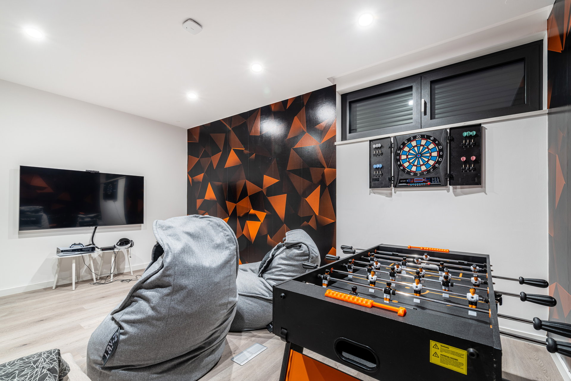 On disposal, the guests have a sauna, jacuzzi, fitness center with equipment, and 2 SUPs. Furthermore, your children can play on the PlayStations 5 with VR or table soccer, table tennis, and darts.