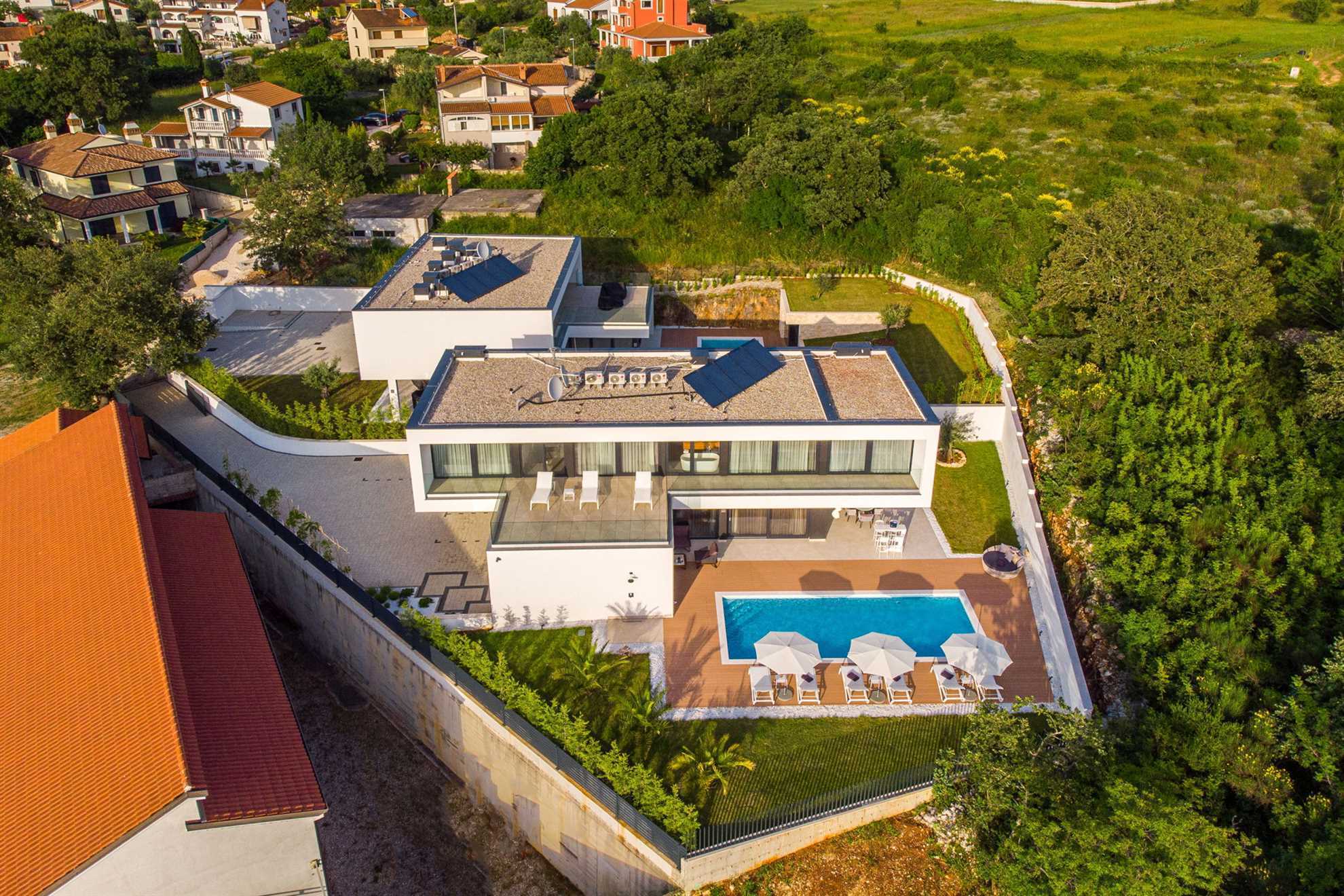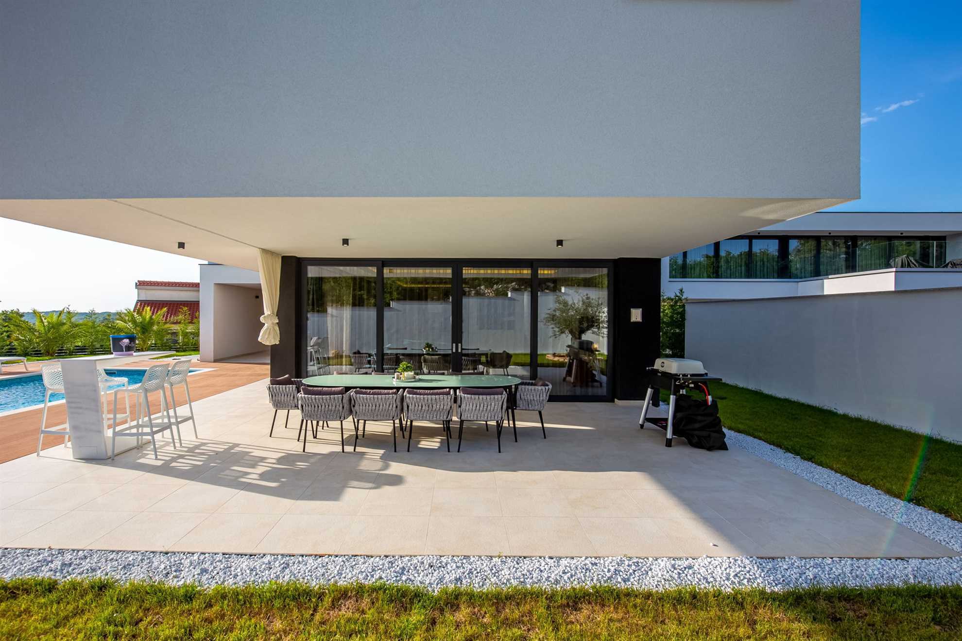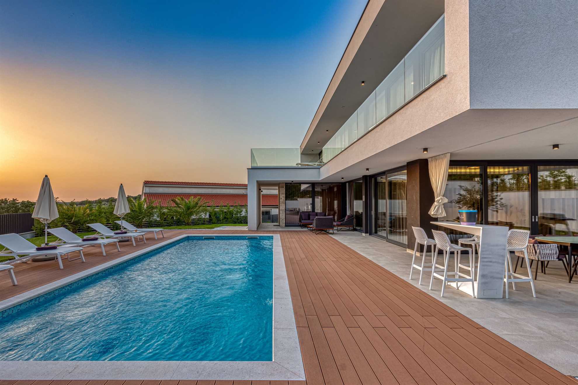 Check out the wonderful 4-bedroom holiday villa near Rovinj, perfect for a family vacation or for a group of friends! Modern and luxury villa Rovigno Ultimo with pool is located in the village of Rovinj, in a peaceful setting surrounded by greenery. It is only a few kilometers from the beach and to the charming old town. Moreover, from here you can easily explore the Istrian inland with medieval hilltop old towns and even easier enjoy the coastal side of Istria and enjoy the turquoise Adriatic Sea.