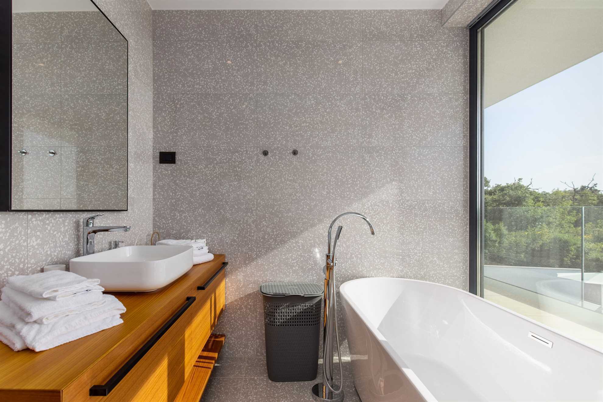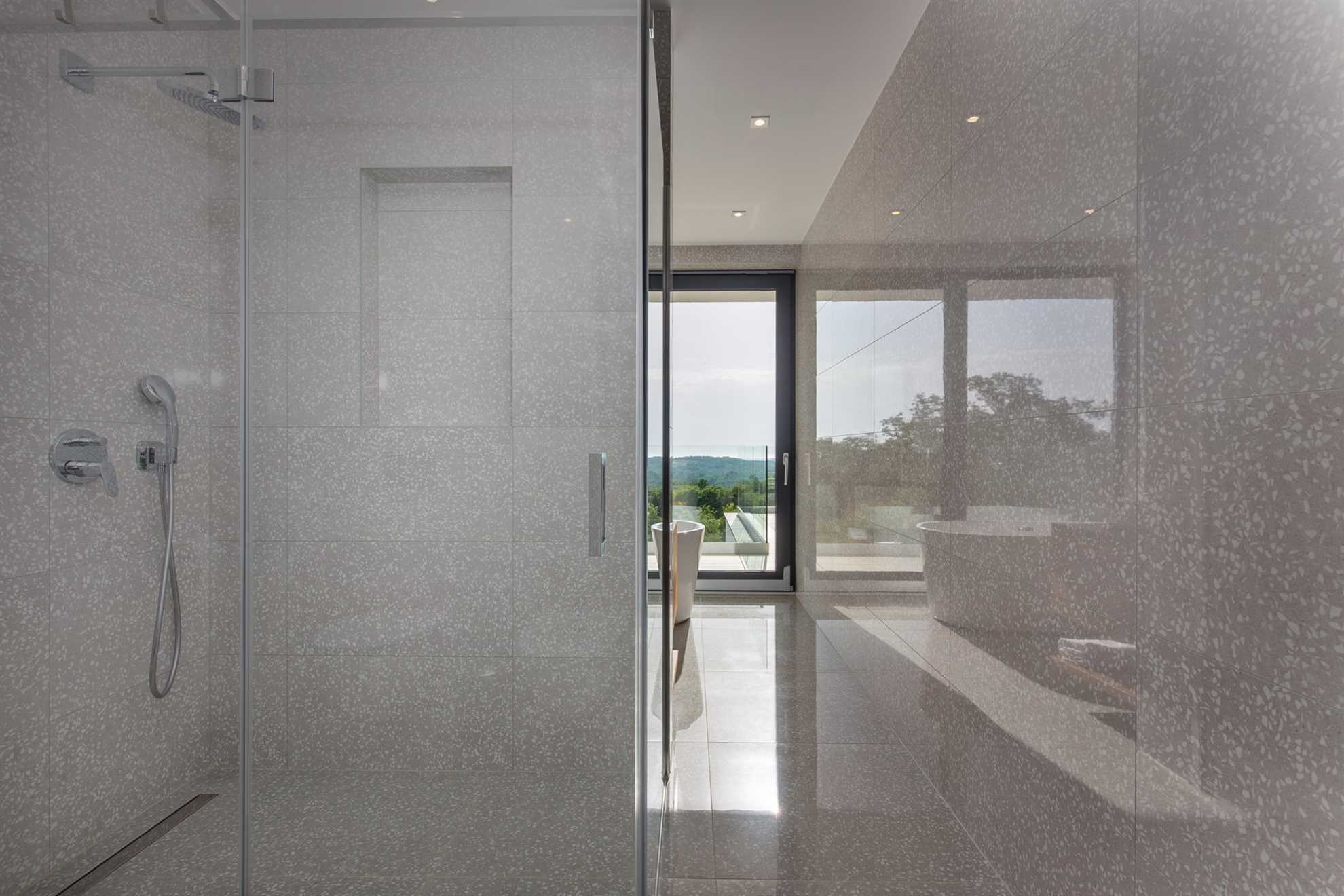 This contemporary holiday villa features a luxurious interior and grandiose exterior. The villa extends on 2 floors, wherefrom each of them you can enjoy stunning panoramic views. Large floor-to-ceiling windows provide a lot of natural light. The villa is fully air-conditioned. In addition, Wi-Fi is available in all areas inside and outside of the villa.
