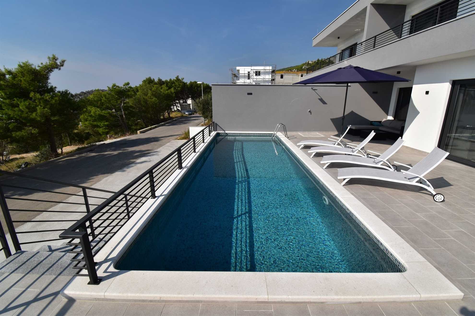 If you are looking for a family villa with a pool in Makarska Riviera, Villa Novella with Heated Pool in the city of Makarska could be your ideal choice! Located in the residential area, on a hill slope, with a view of the sea, it offers a modern and quiet setting for a family vacation.