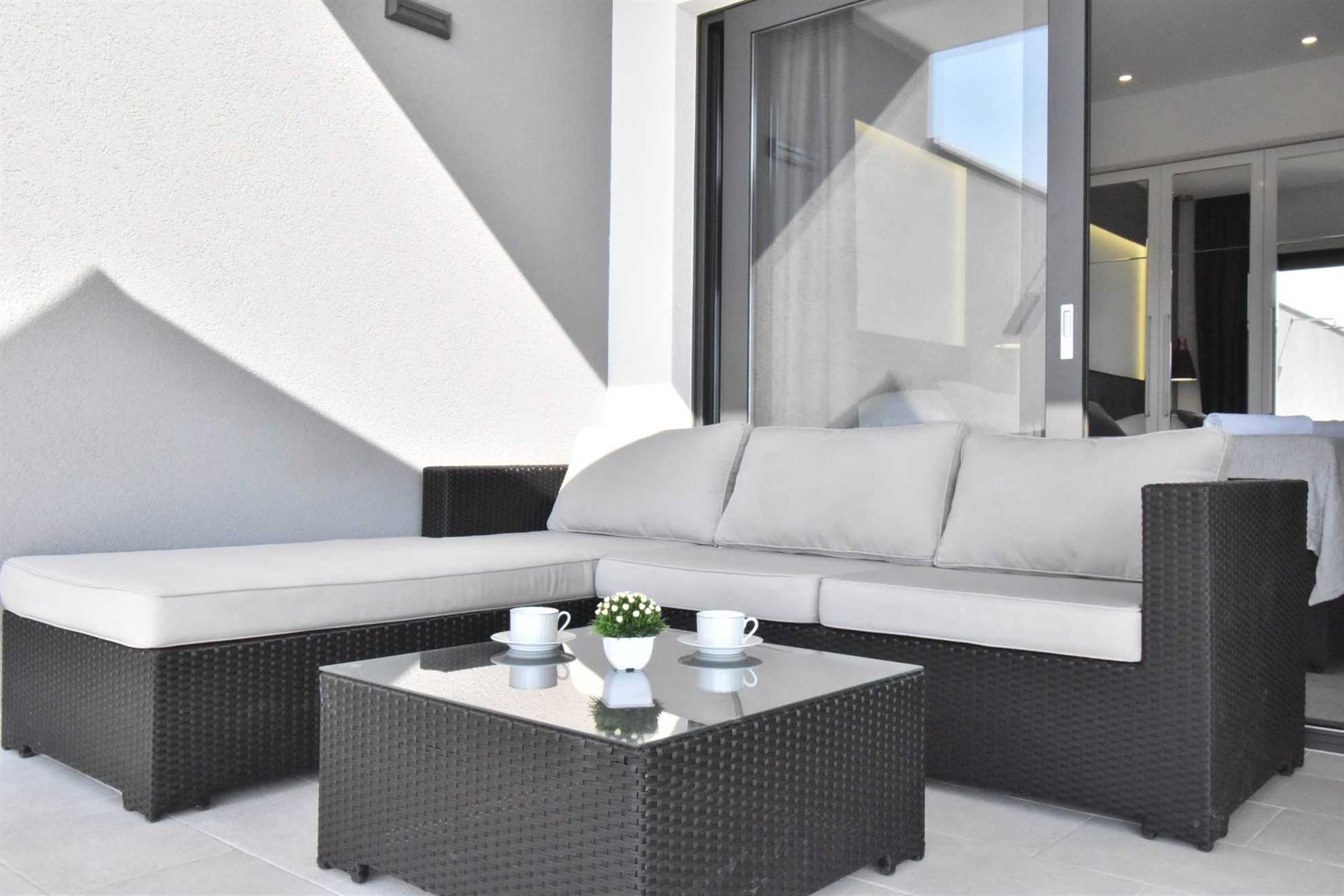 Villa Novella encompasses a private plot of 500 square meters, with a residential area of 250 square meters. It is semi-detached and neighbors its sister Villa Maritea. Each of them is completely private and soundproofed.