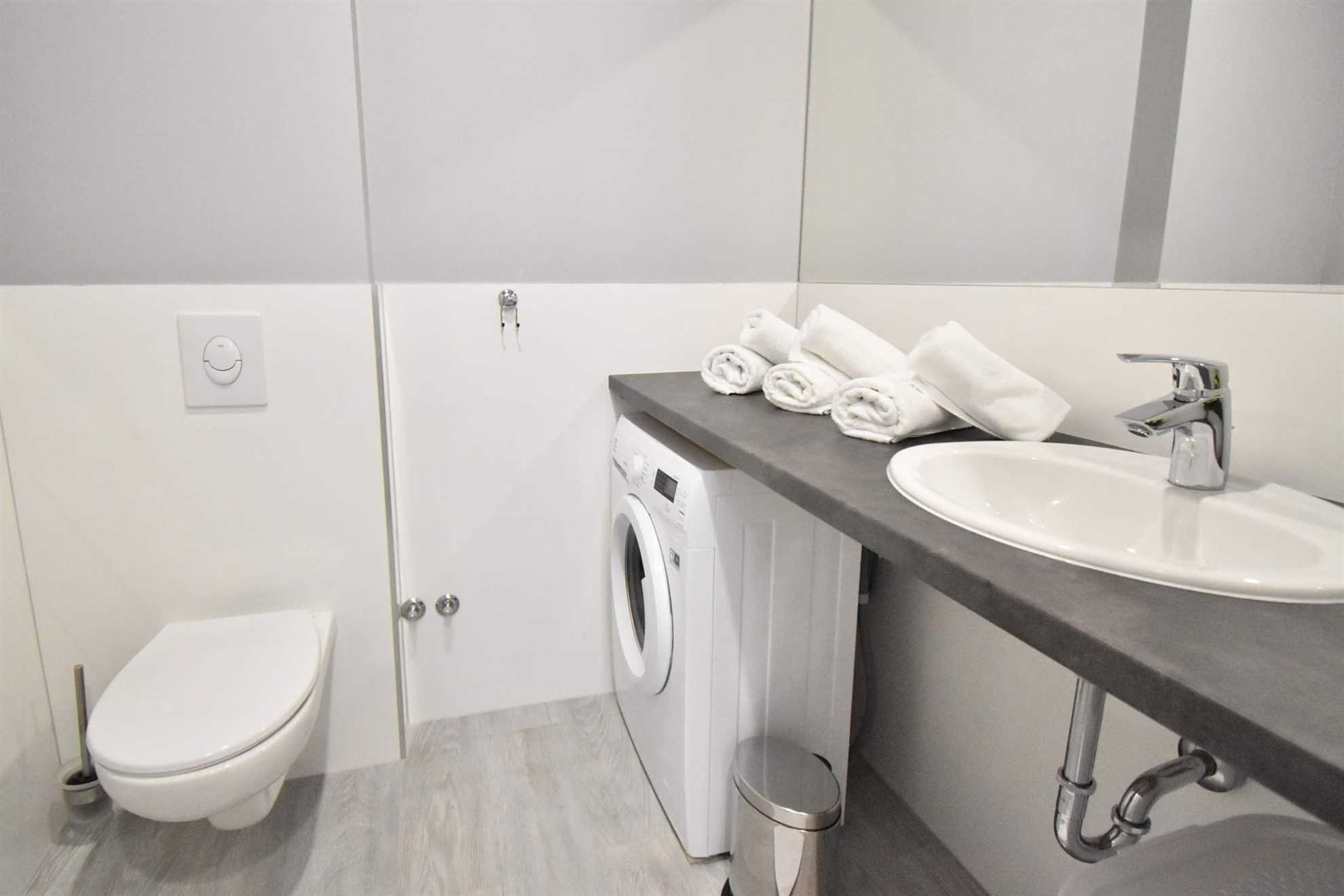 The living room is on the ground floor and boasts large sofa seating that can be converted into an additional sleeping bed for two. Here you will also find a Smart TV with satellite channels and a pre-installed Netflix App.