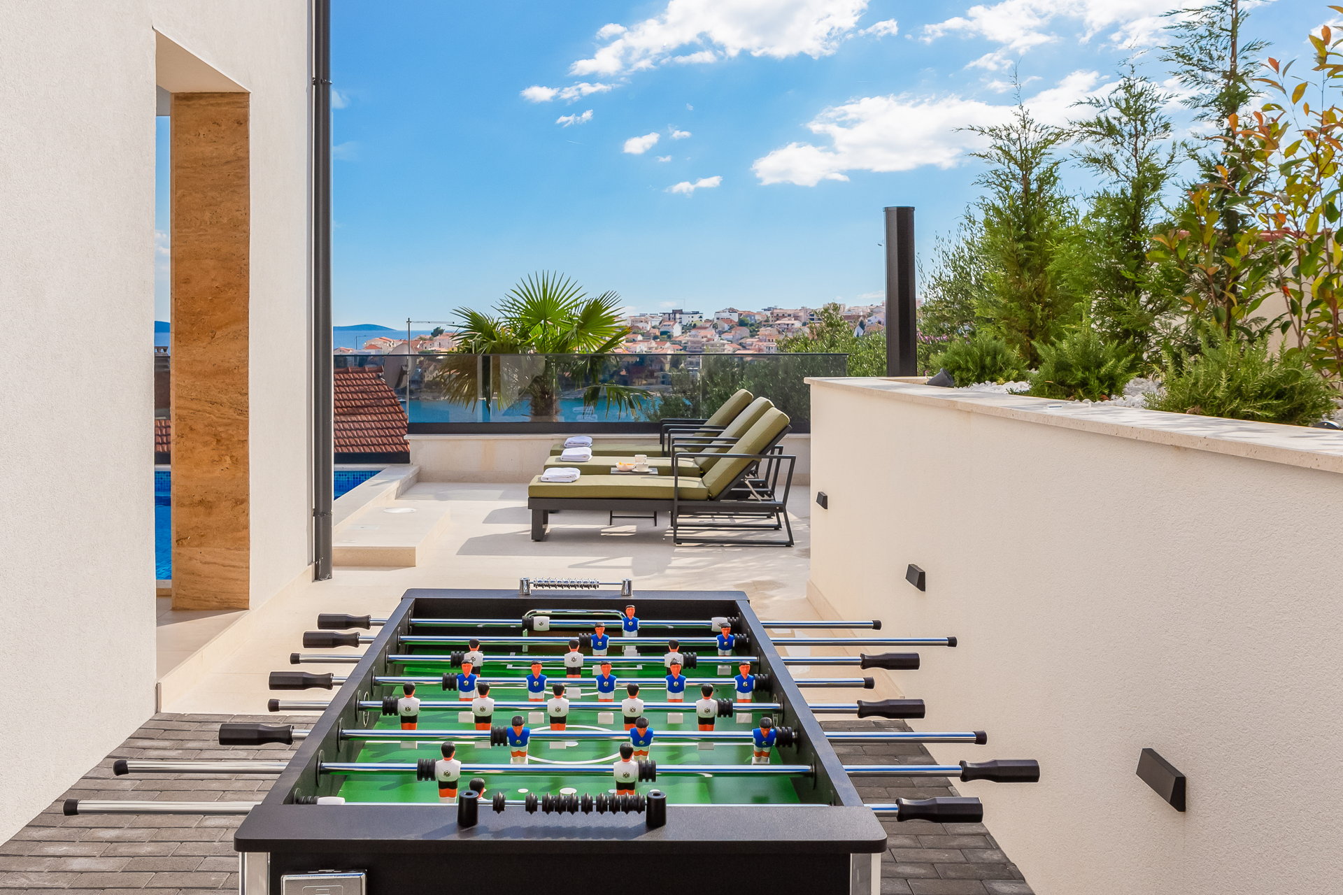 Families with children will find themselves warmly welcomed at Villa Karla with Pool near Trogir. A baby cot is thoughtfully provided, and a baby chair can be arranged upon request. The villa's courtyard boasts a delightful children's playground and a table football, ensuring that younger and older guests alike can revel in additional entertainment while enjoying a refreshing swim in the pool. The pool can be heated.