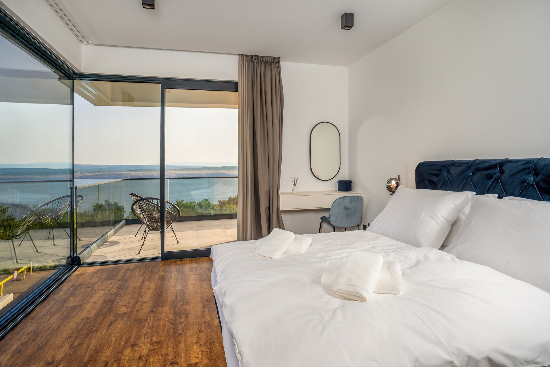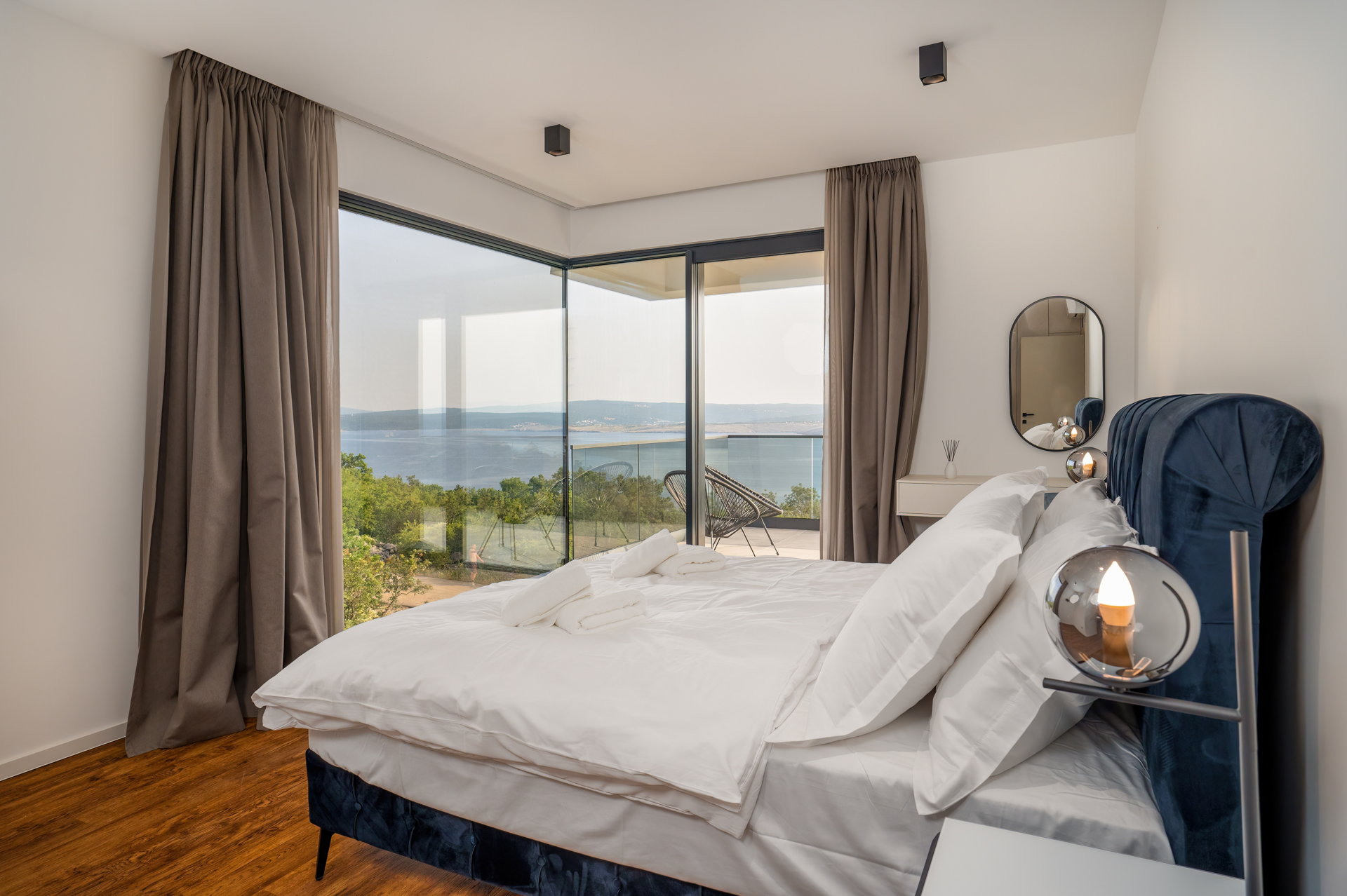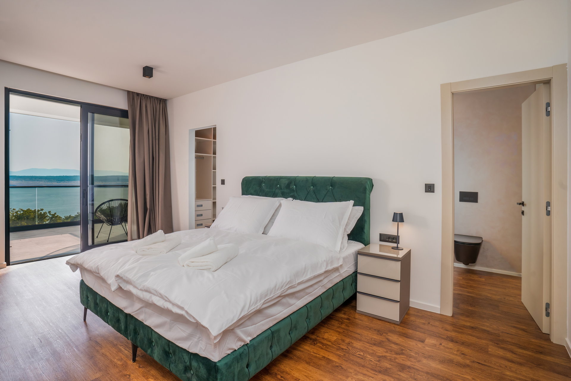 Each of the villa's exquisitely appointed bedrooms affords sweeping panoramic vistas of the sea and the surrounding natural tapestry, ensuring that each day commences with a generous serving of breathtaking beauty.