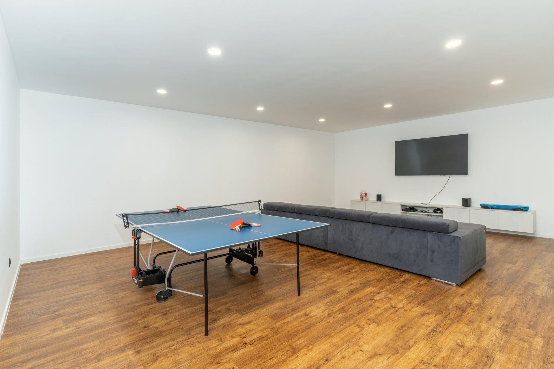 Rest assured, you needn't fret about securing a parking spot, as four complimentary parking spaces await you in the garage. Yet, there's more to this splendid haven than convenient parking! An array of enjoyable activities beckon, from engaging in spirited rounds of table tennis and immersive video gaming on the PlayStation to partaking in invigorating games of badminton and darts. Should you wish to maintain an active lifestyle during your vacation, a equipped fitness room awaits.