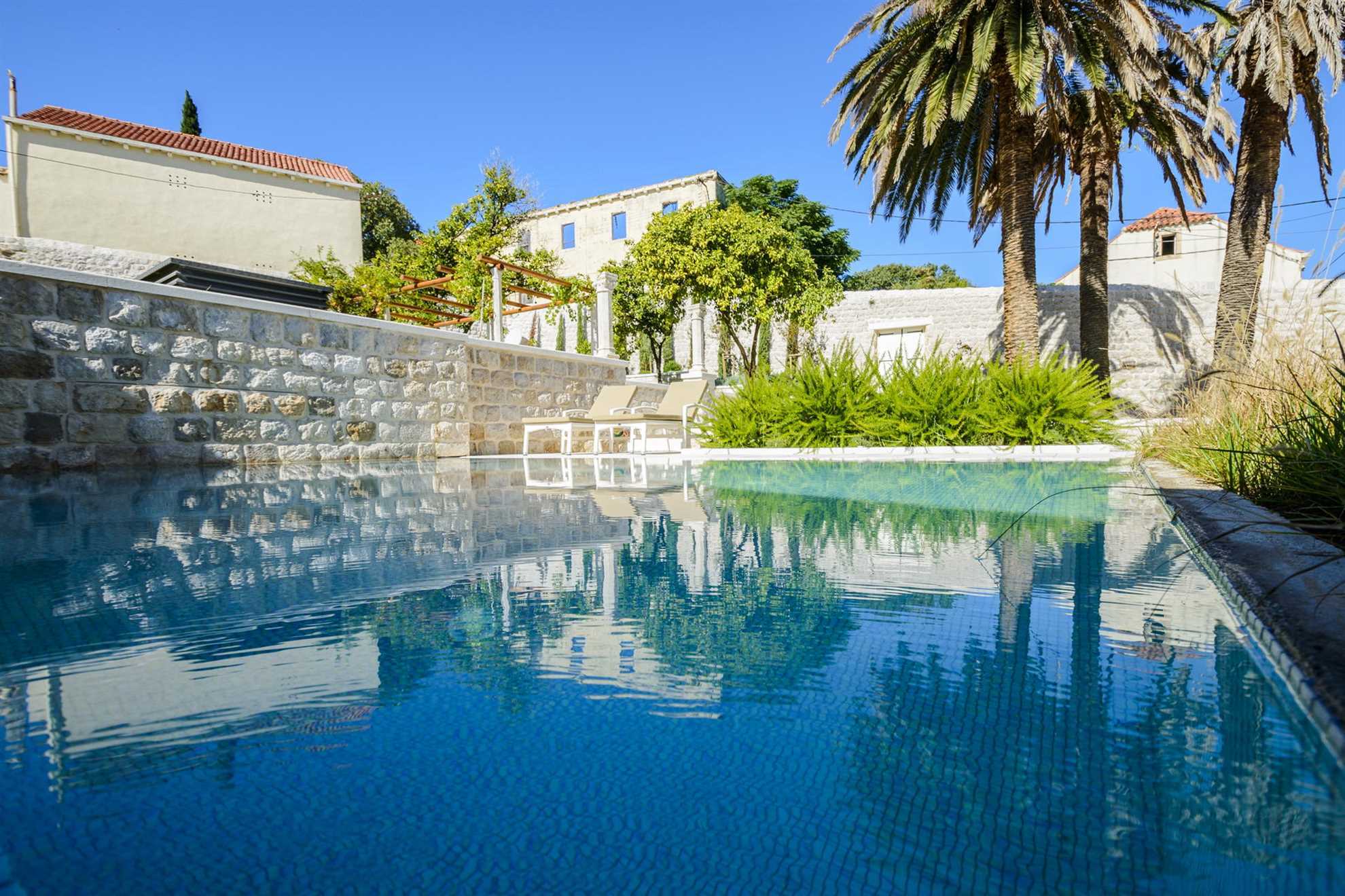 Villa Bourgeois Grand Palace is a superbly and newly renovated villa situated 40 meters from the center of Zaton, the small charming town only 10 km away from Old Town of Dubrovnik and just 5 m from the sea. The Villa was built in the 15th century and originally as a summer residence of aristocrats. Anyway, the natural beauty of this 2 km long bay did not escape the people of old Dubrovnik, and so here there are numerous summer residences of patrician and bourgeois families.Recent investments of million of euros to redecorate, in collaboration and restorations experts this magnificent villa today is the perfect example of its historic ambiance combined with modern furniture.