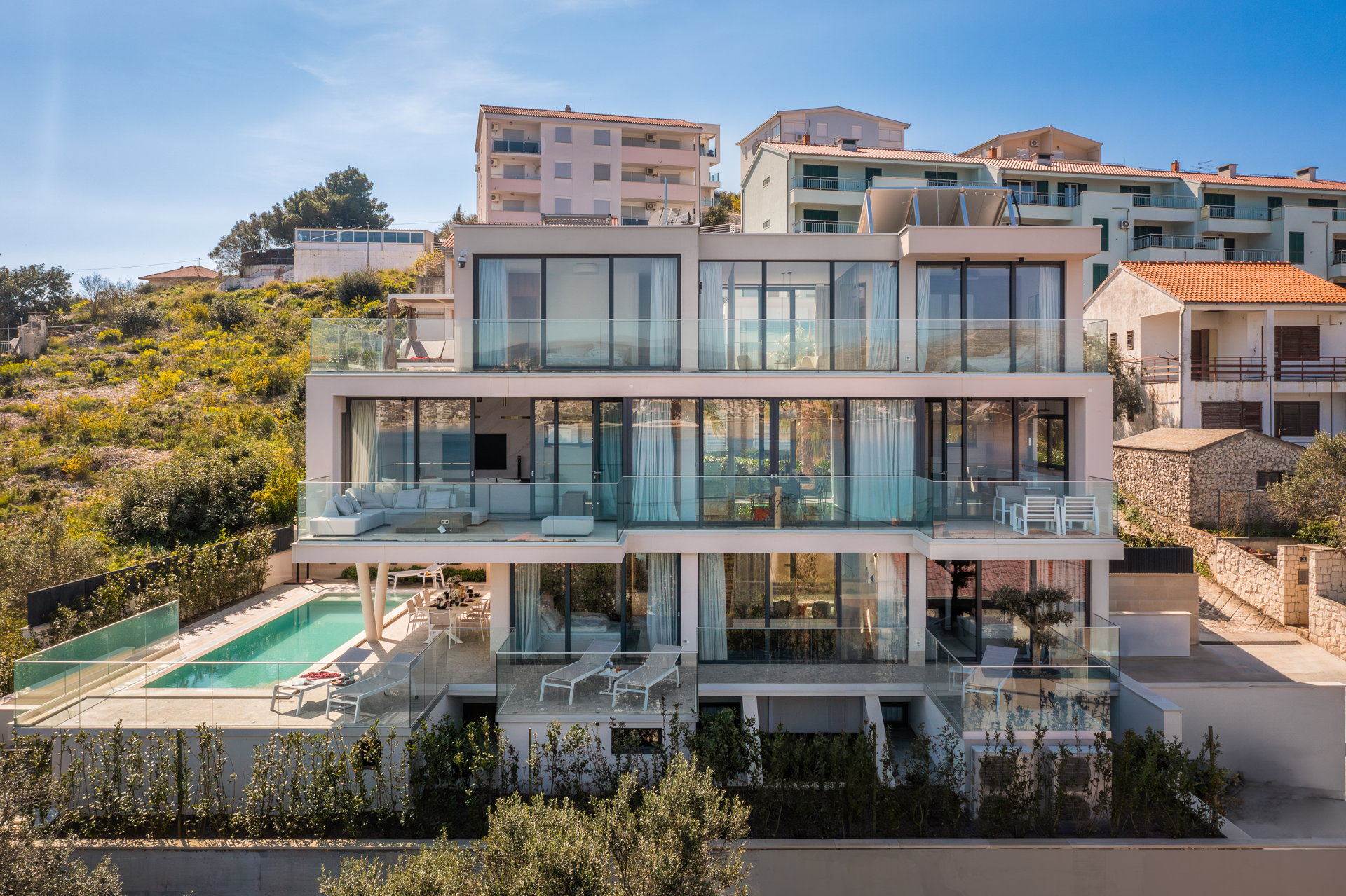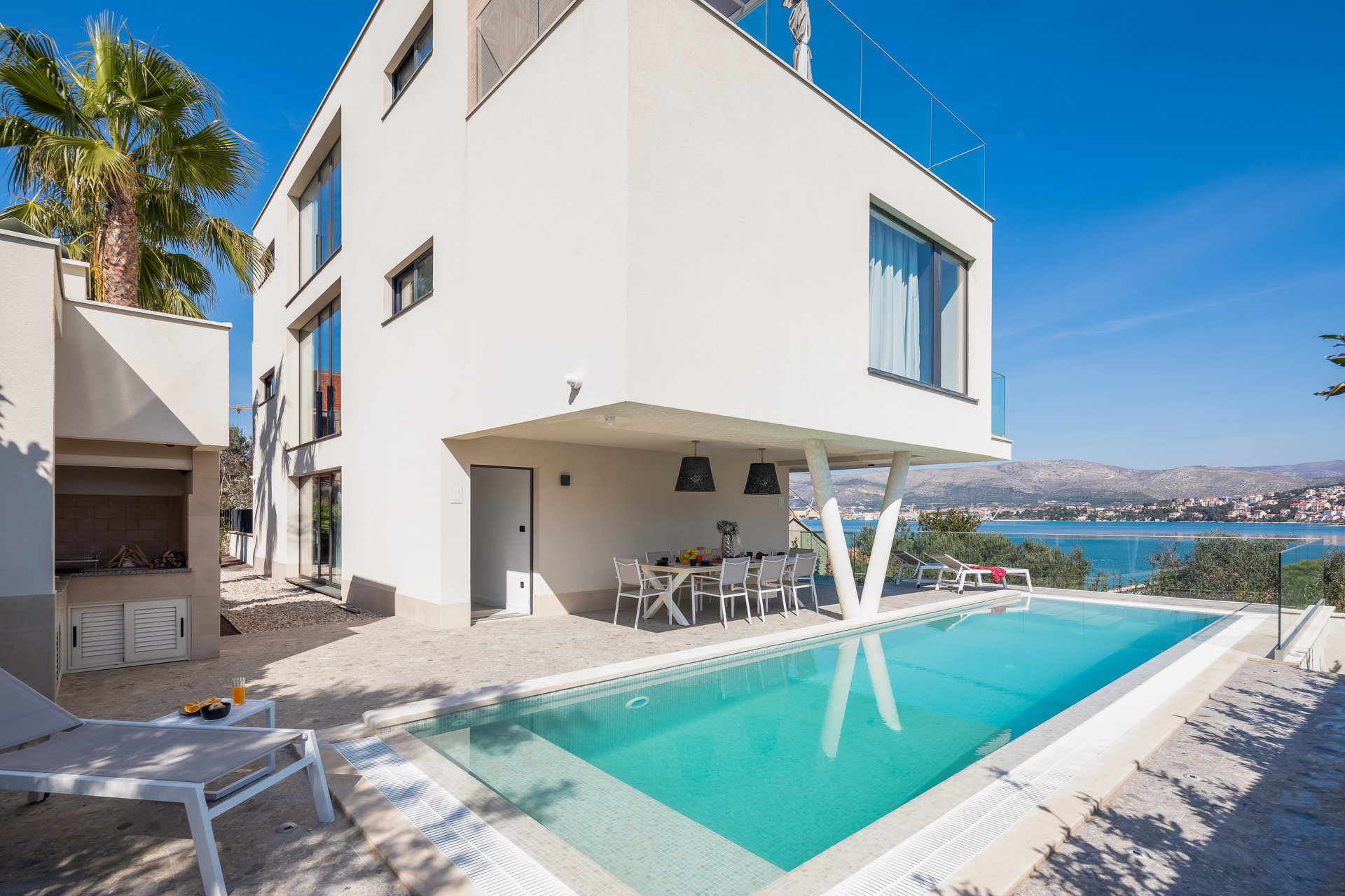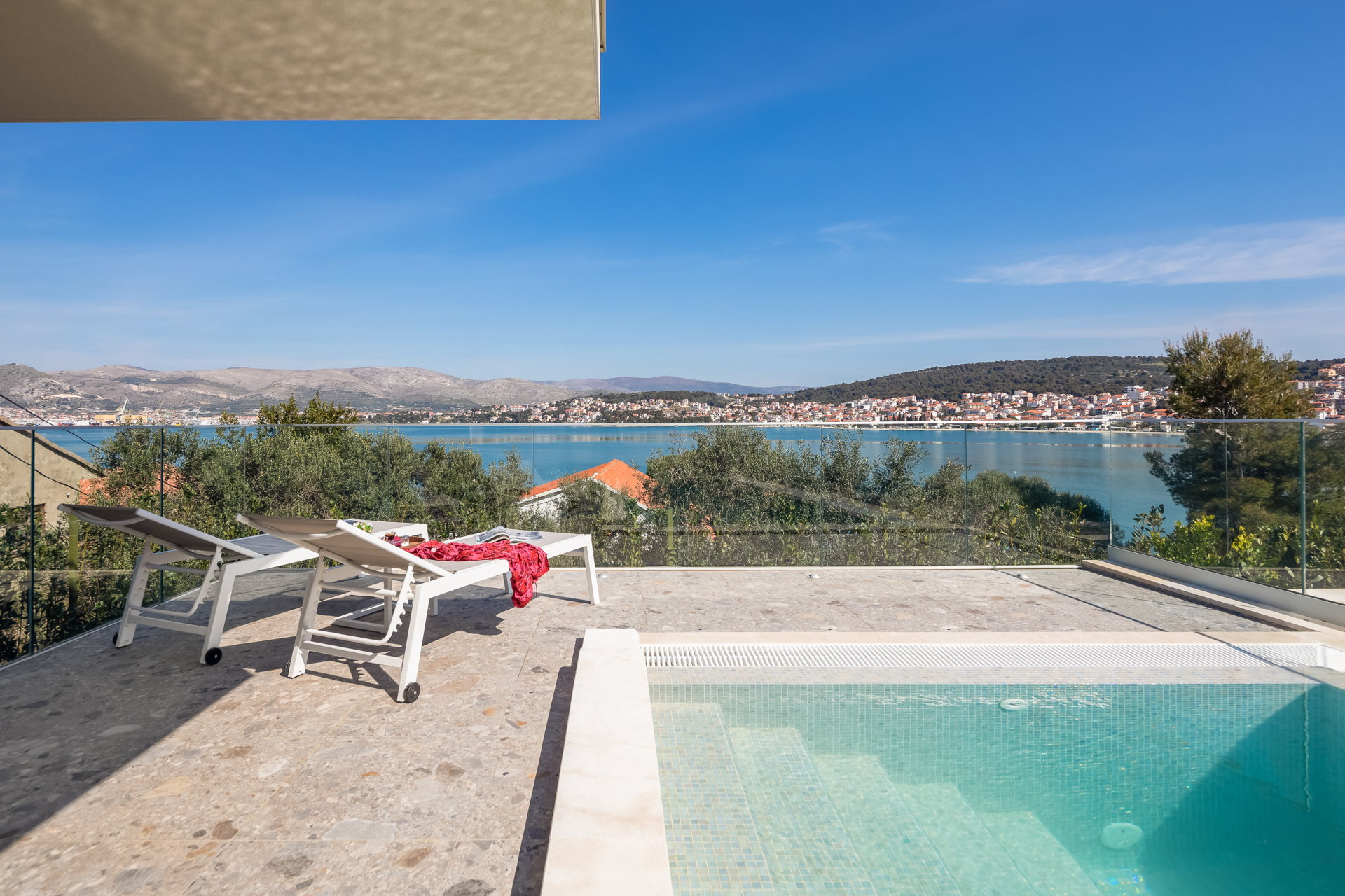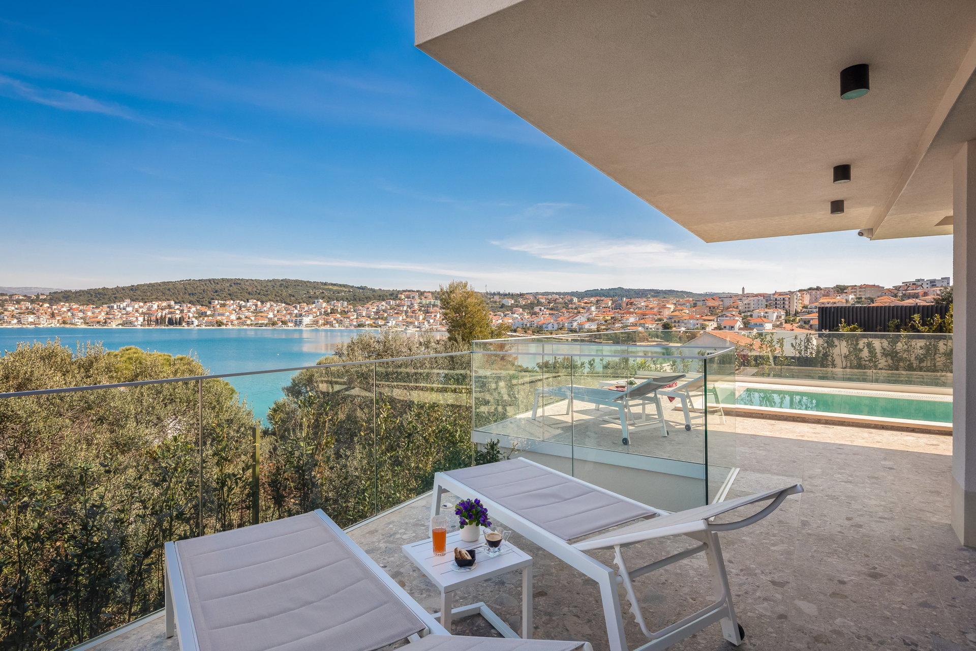 The Luxury Villa Glass with Pool features multiple sunny terraces. You can soak up the sun and enjoy the Croatian summer to the fullest.