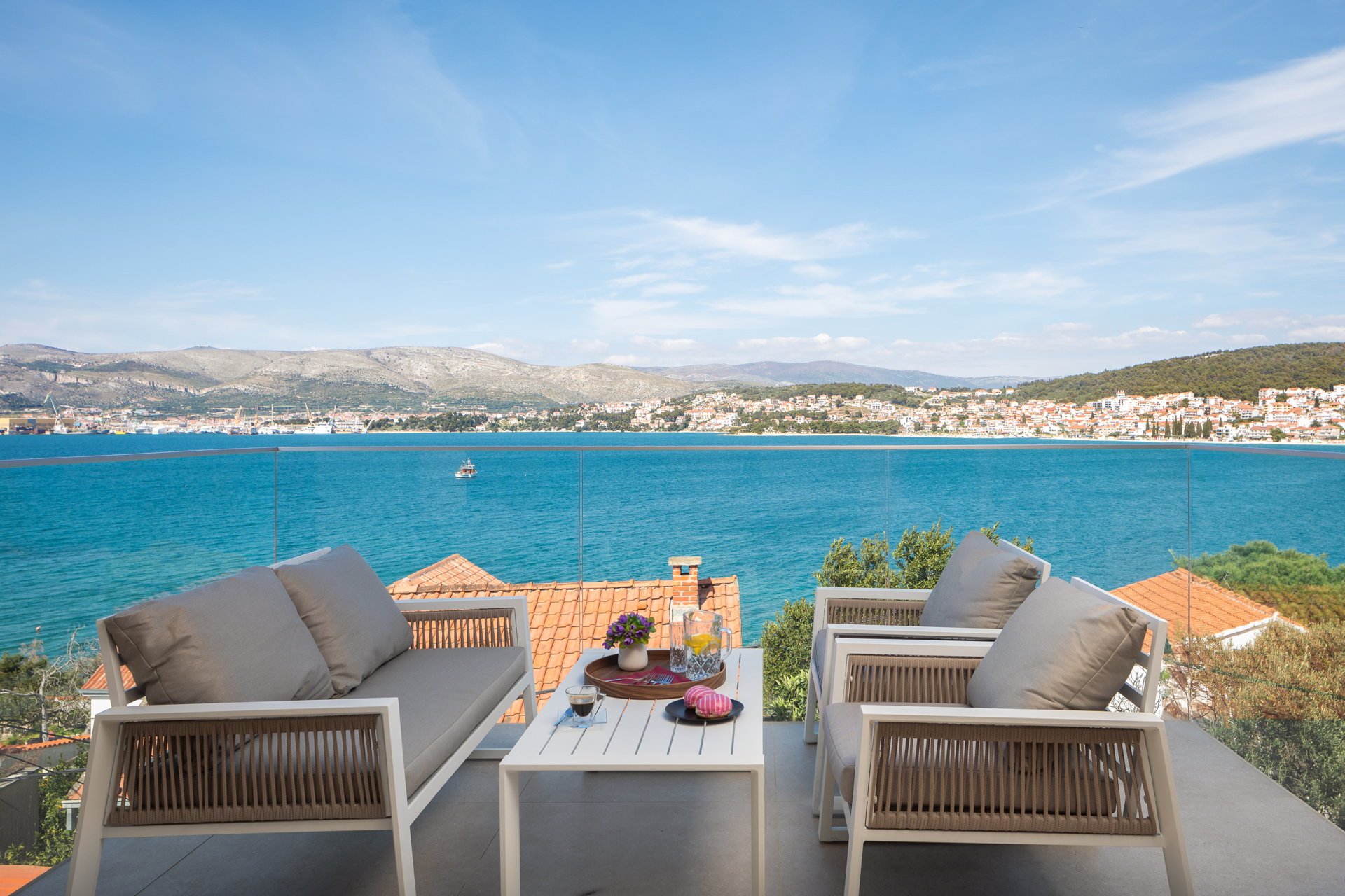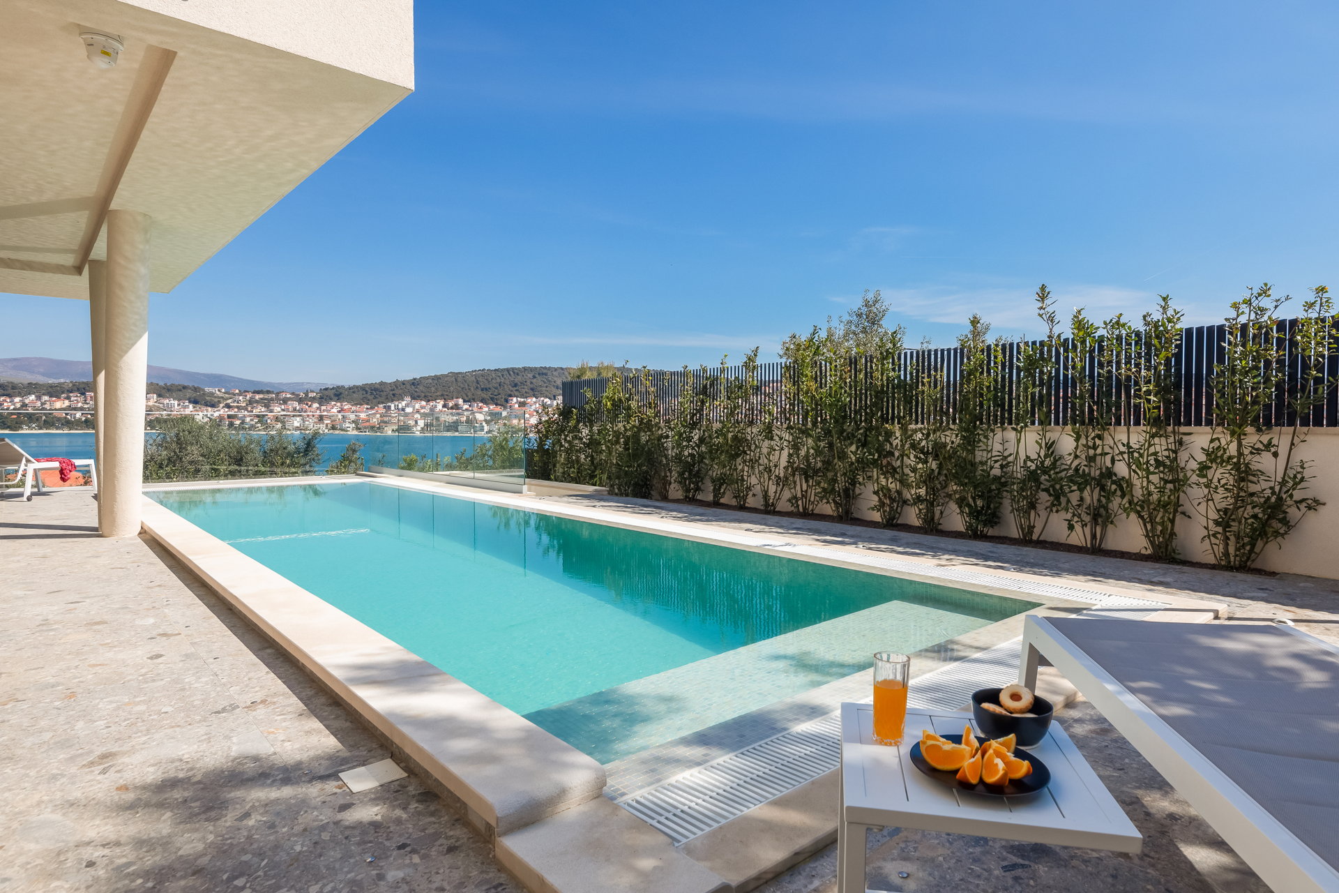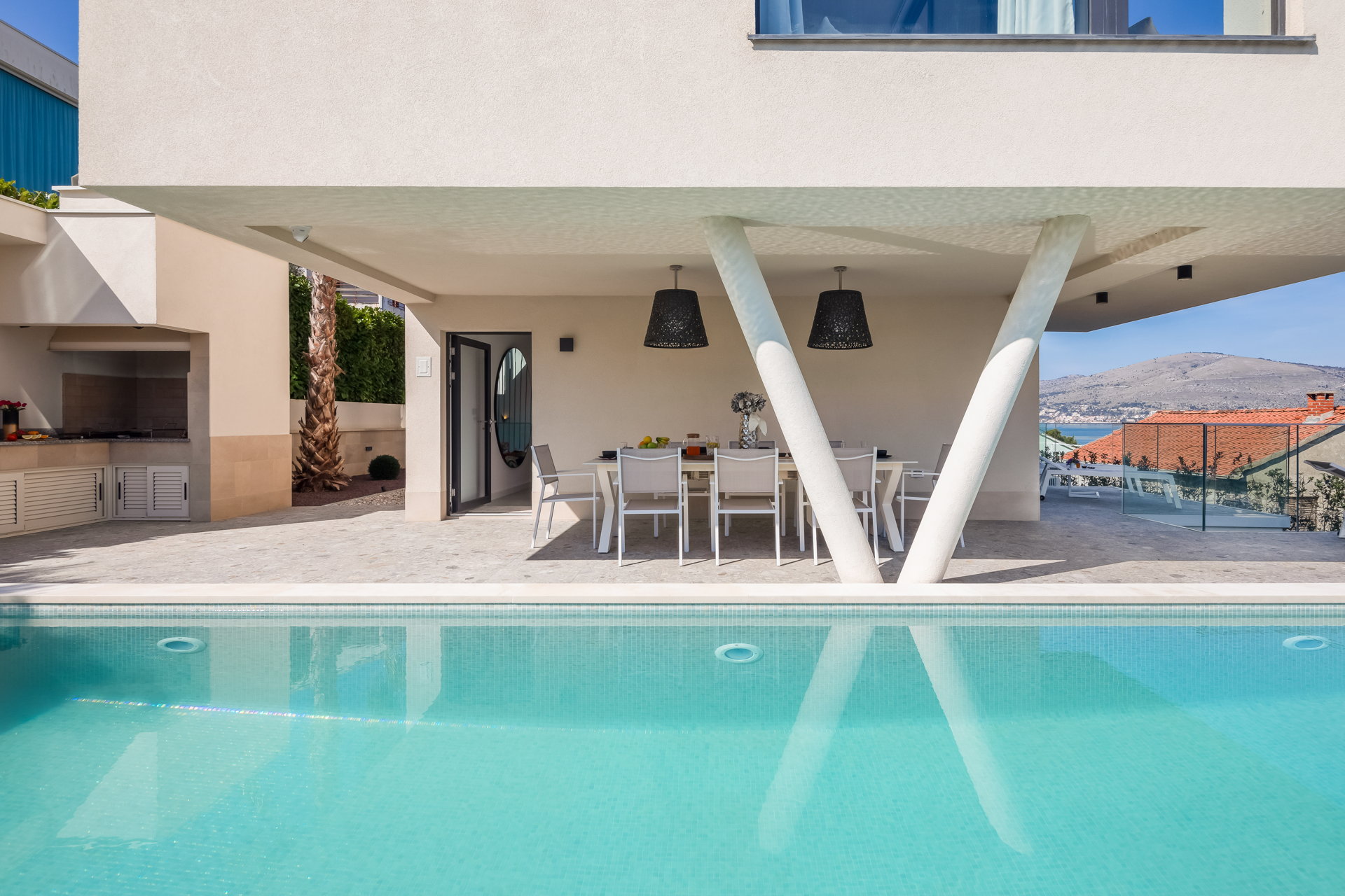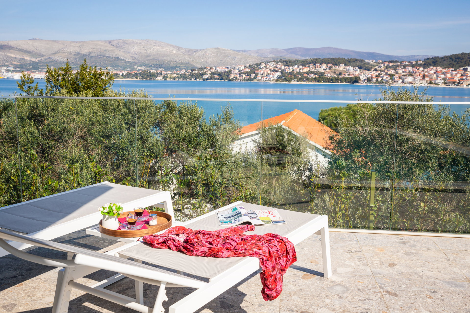 The Luxury Villa Glass with Pool features multiple sunny terraces. You can soak up the sun and enjoy the Croatian summer to the fullest.