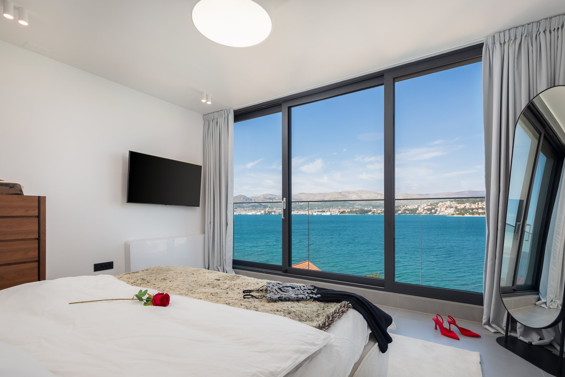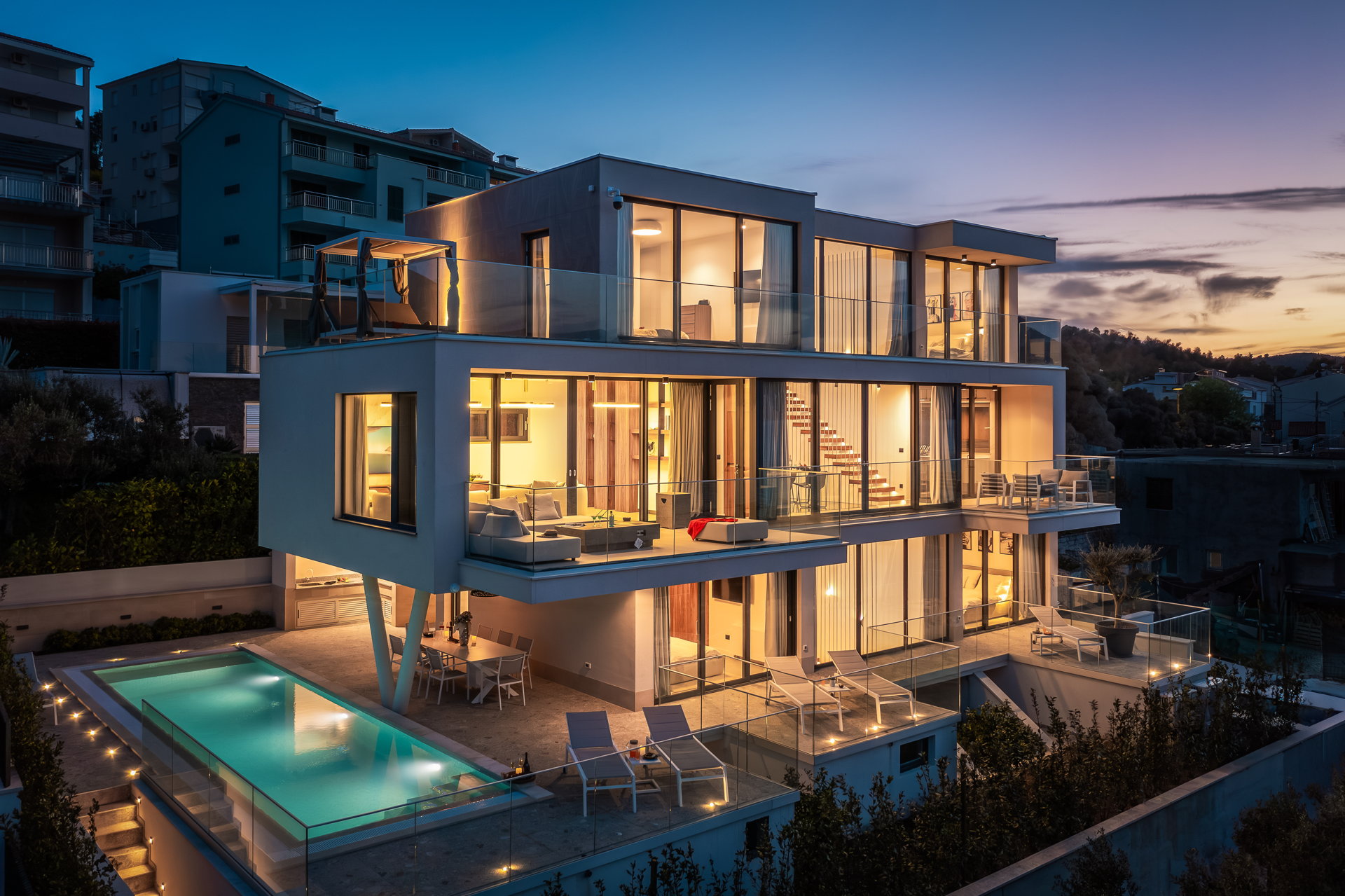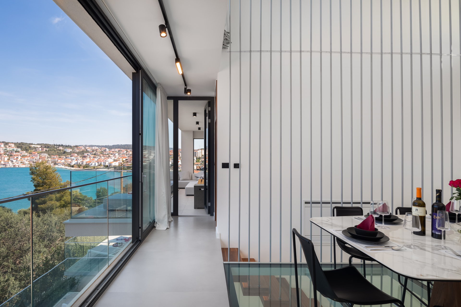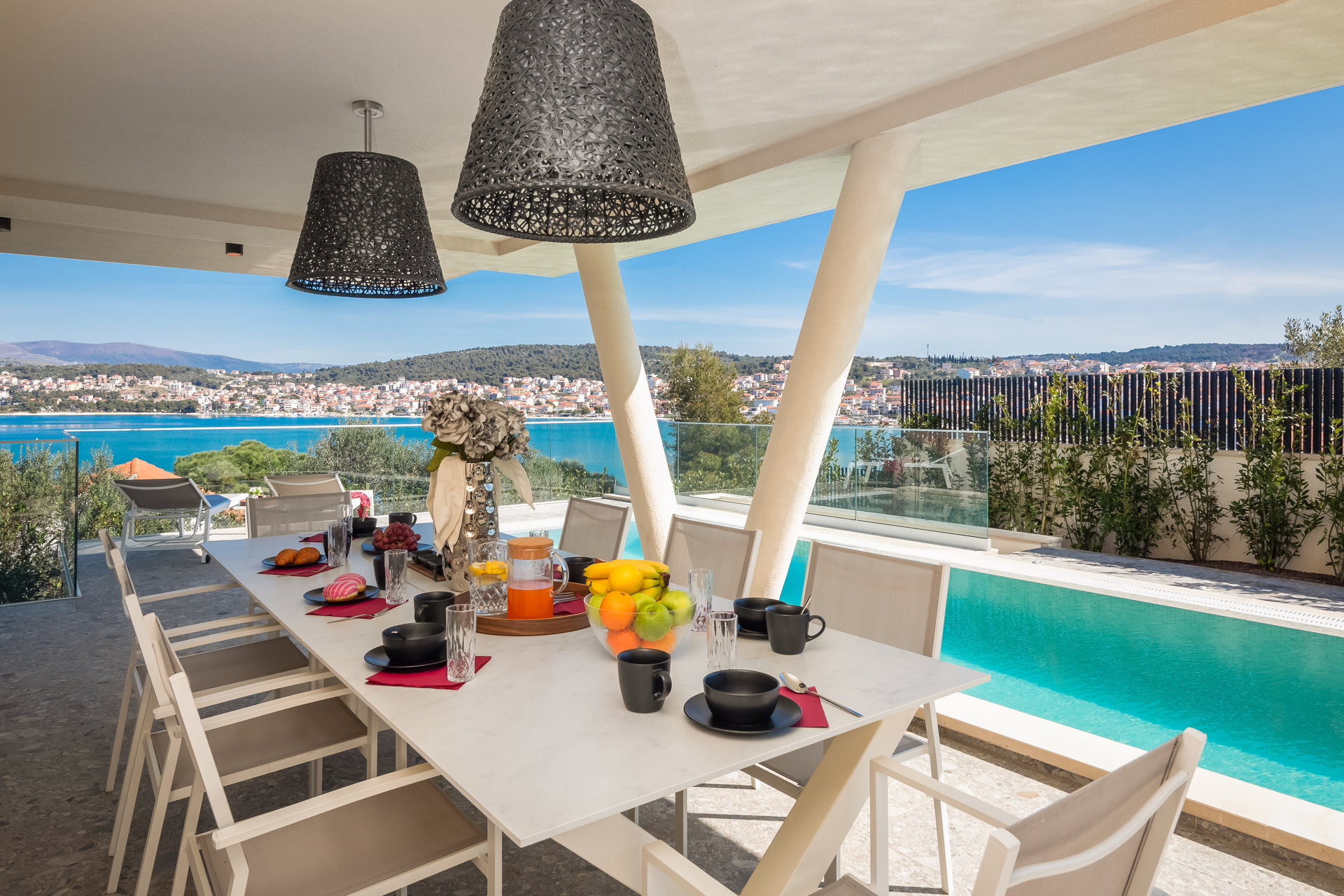 The Luxury Villa Glass with Pool features multiple sunny terraces. You can soak up the sun and enjoy the Croatian summer to the fullest.