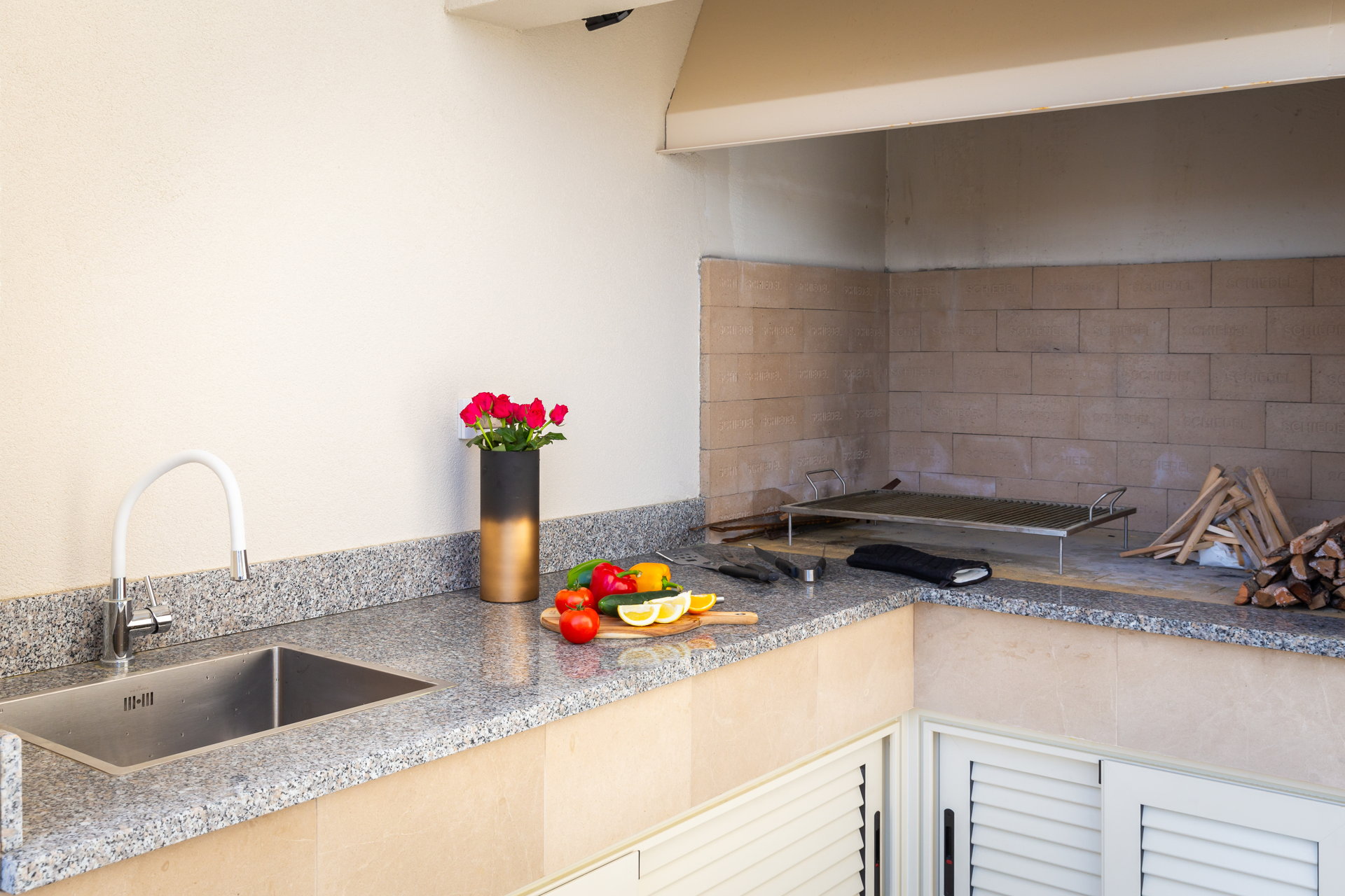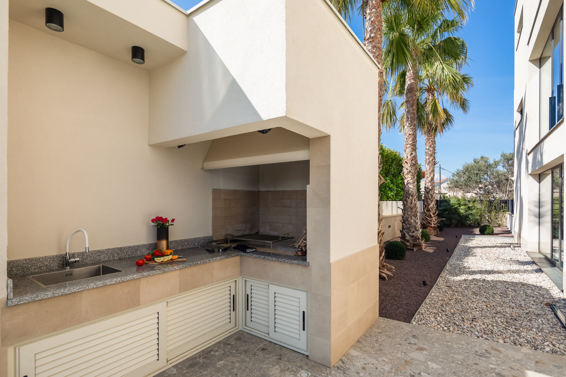 In the basement area, guests can unwind in the lounge area or stay active in the well-equipped home gym with table tennis facilities. The shaded outdoor dining area, complete with a wood-fire grill, provides the perfect setting for al fresco meals with your loved ones.