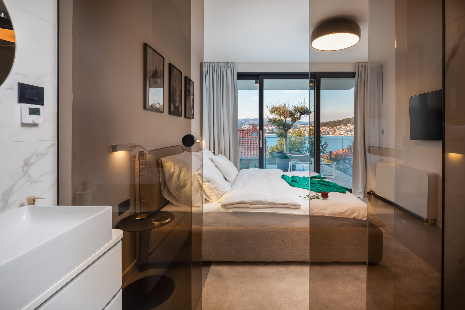 Luxury Villa Glass offers easy access to local attractions. It is situated just 50 meters from the nearest beach and a pleasant 15-minute walk from the Okrug Gornji village center. The grocery shops, cafés and restaurants are within 10 minute walking distance.