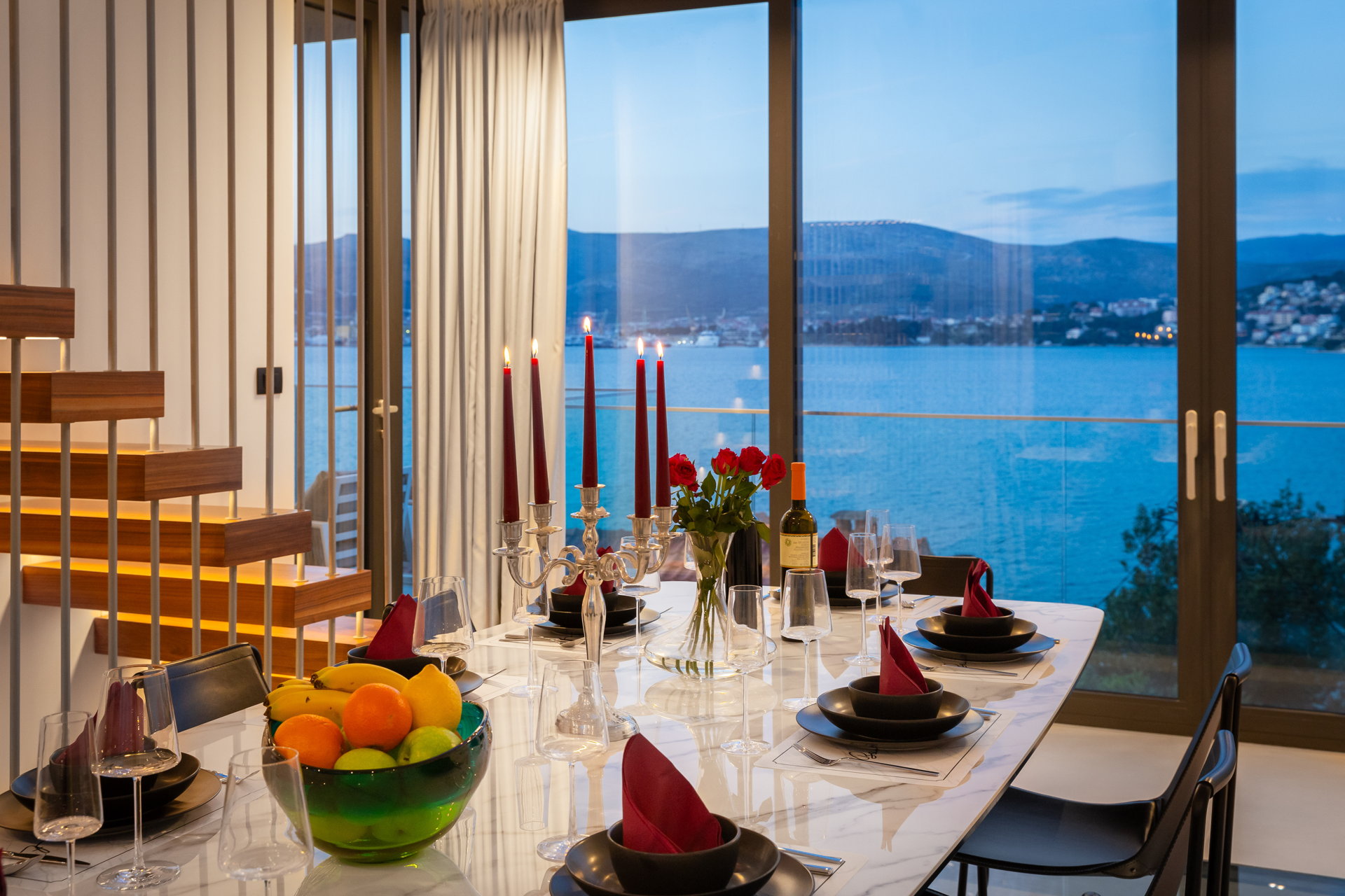 Nestled by the sea, just a minute's walk from the beach, Luxury Villa Glass with Pool offers unparalleled sea views through its expansive glass windows. A contemporary staircase seamlessly connects every corner of the villa, ensuring ease of movement throughout.
